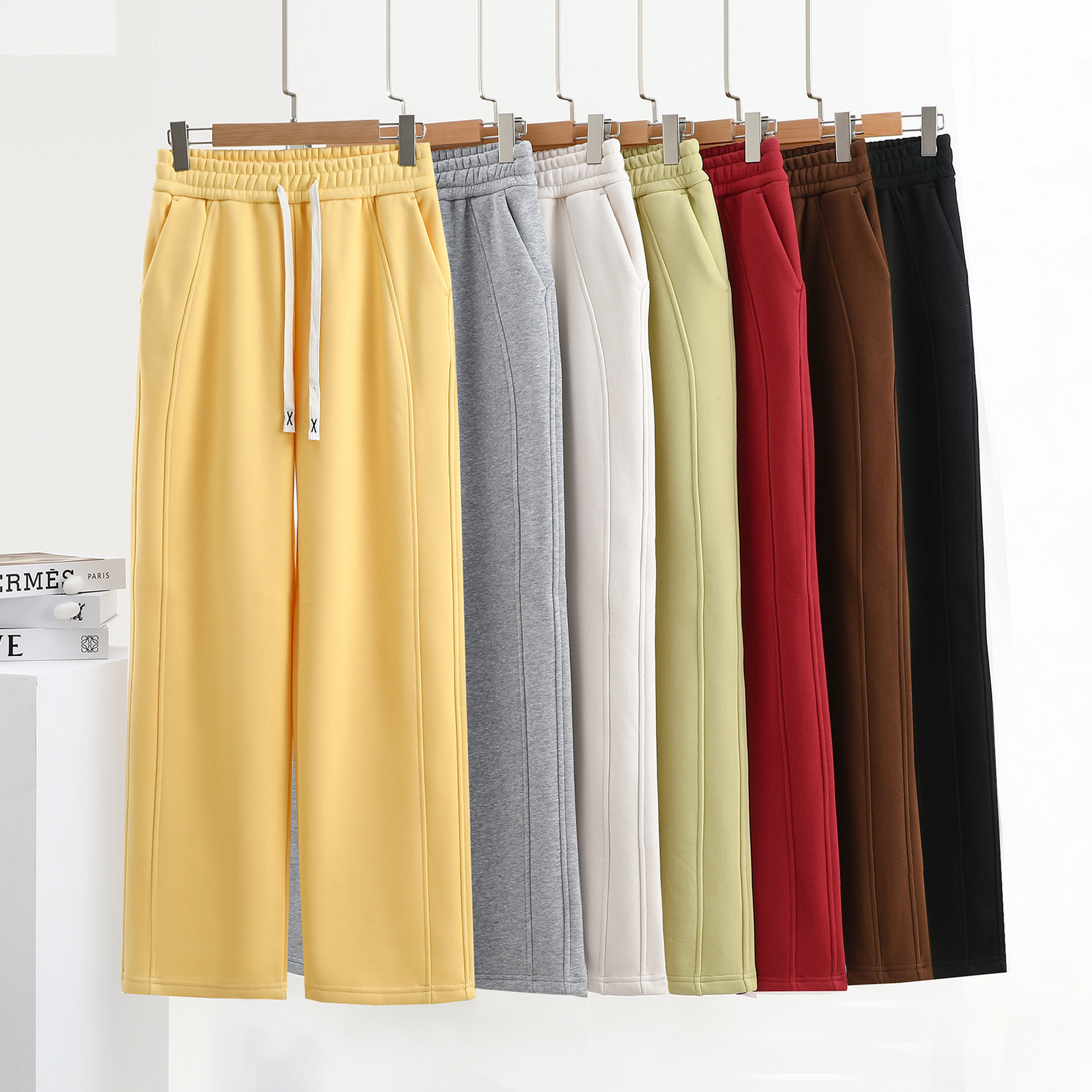 Главная страница > Однотонные брюки прямого кроя для женщин, новинка осени и зимы 2024 года, широкие хлопковые спортивные брюки с вставками, с высокой талией, свободные, на флисовой подкладке, повседневные.