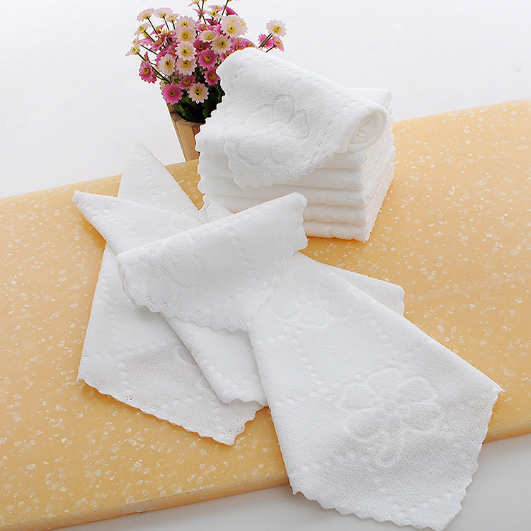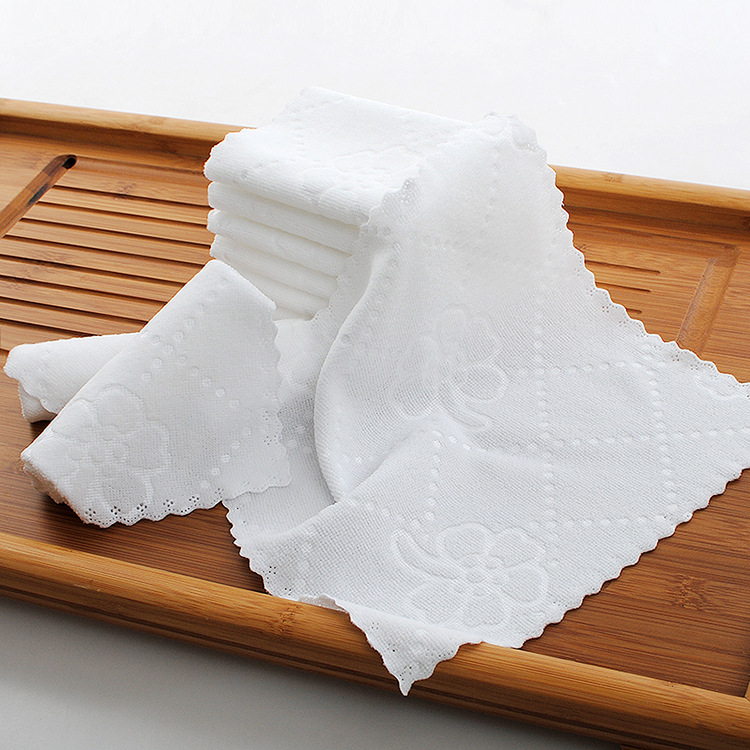 Оптовые белые квадратные одноразовые полотенца из кружева для протирания рук, маленькие квадратные полотенца с тиснением из волокна, в том же стиле, как используются в небольших отелях.