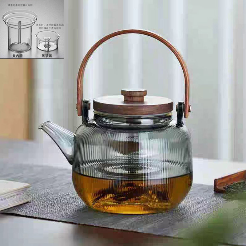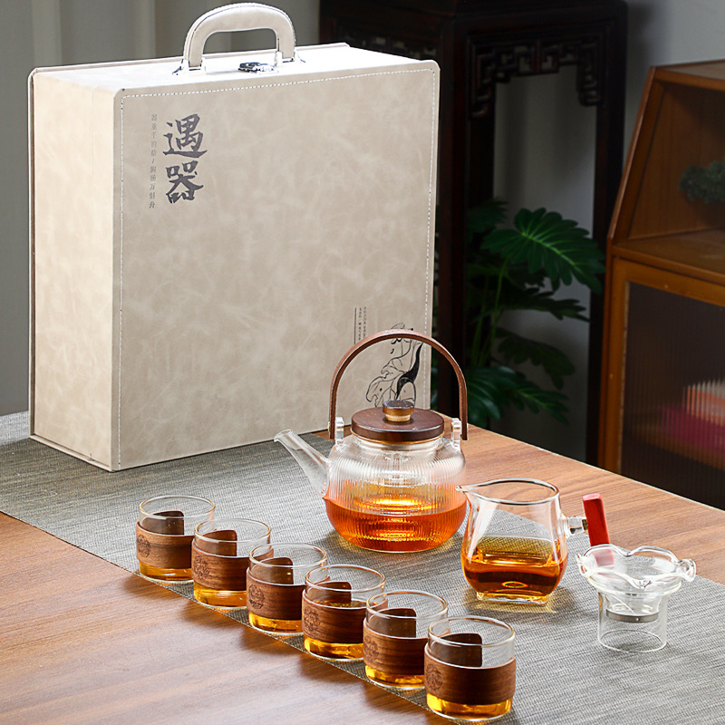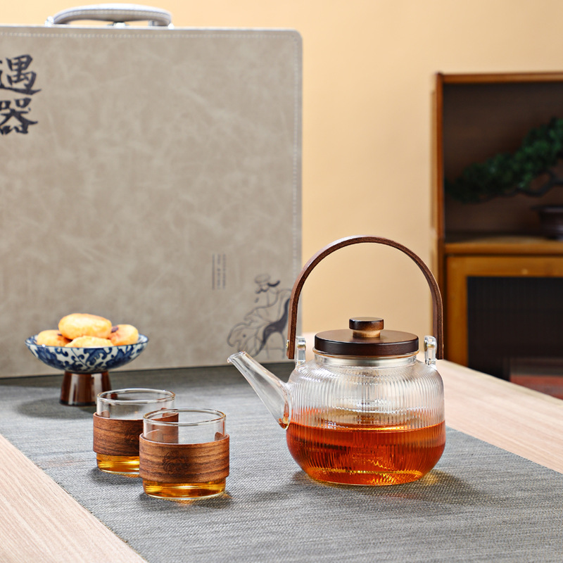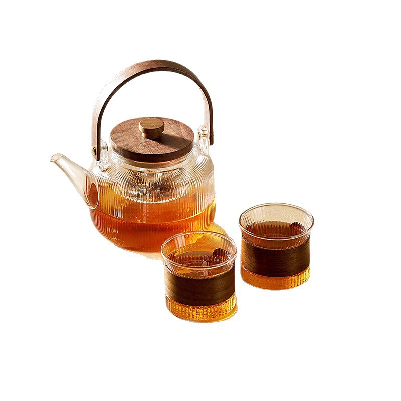 [Подарочный набор] Прозрачный чайник с вертикальными полосами, 1 чайник, 6 чашек + электрическая керамическая плита