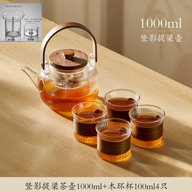 Лобный вертикальный чайник вертикальный деревянный карточка чашка * 4