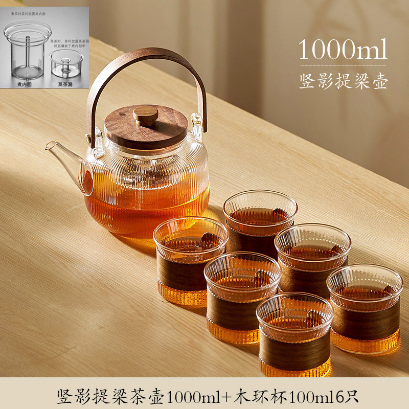 【Подарочный набор】Прозрачный чайник с вертикальными полосками (1 шт.) с 6 чашками + кувшин
