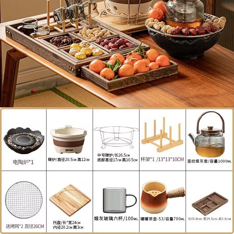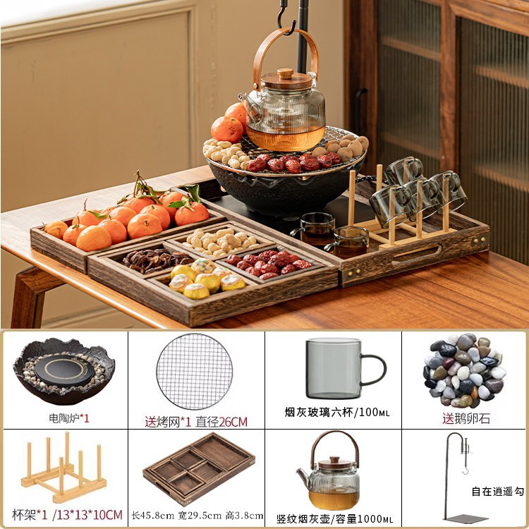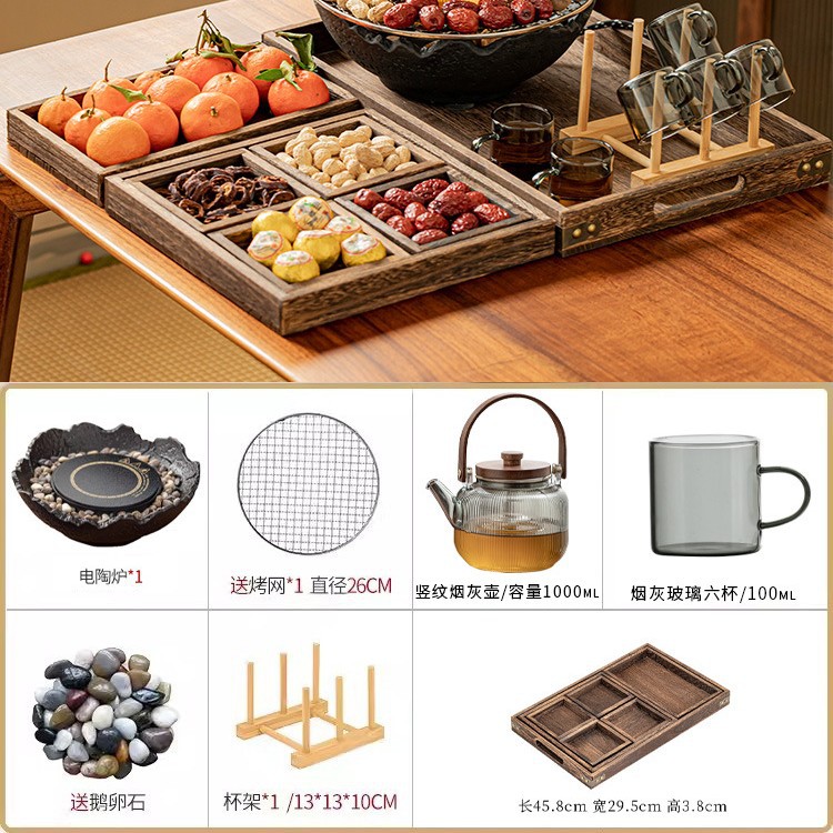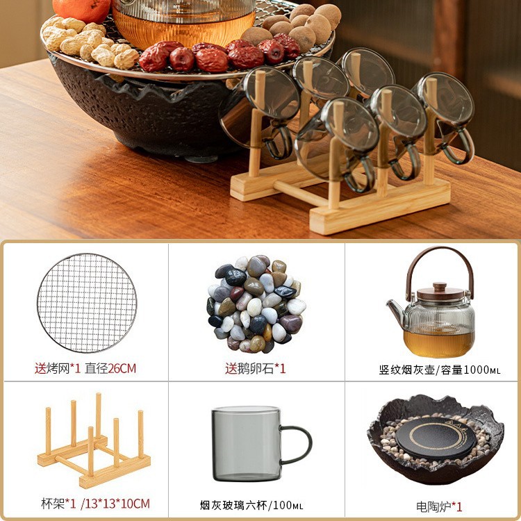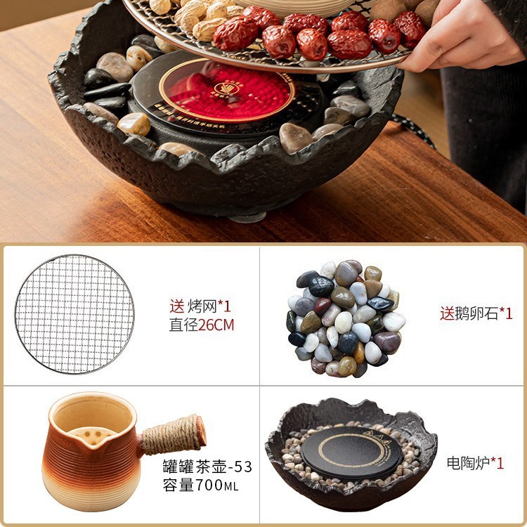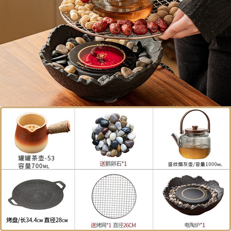 Банка для горшка 53 + вертикальная зернистая сигарета + электрическая керамическая плита MZ - черный пожарный чайный столик, чайный поднос, чайная чашка, большой комплект