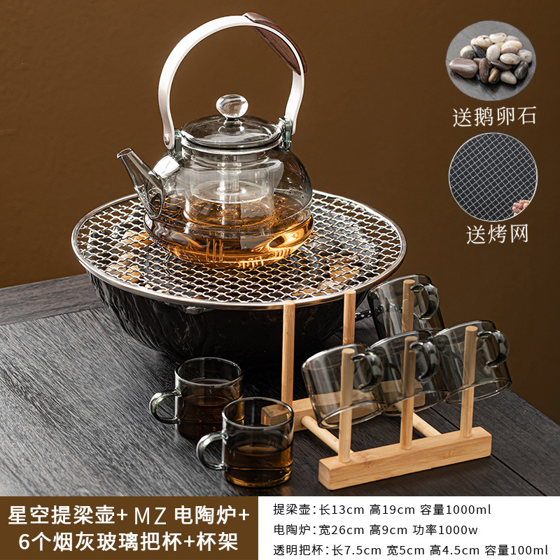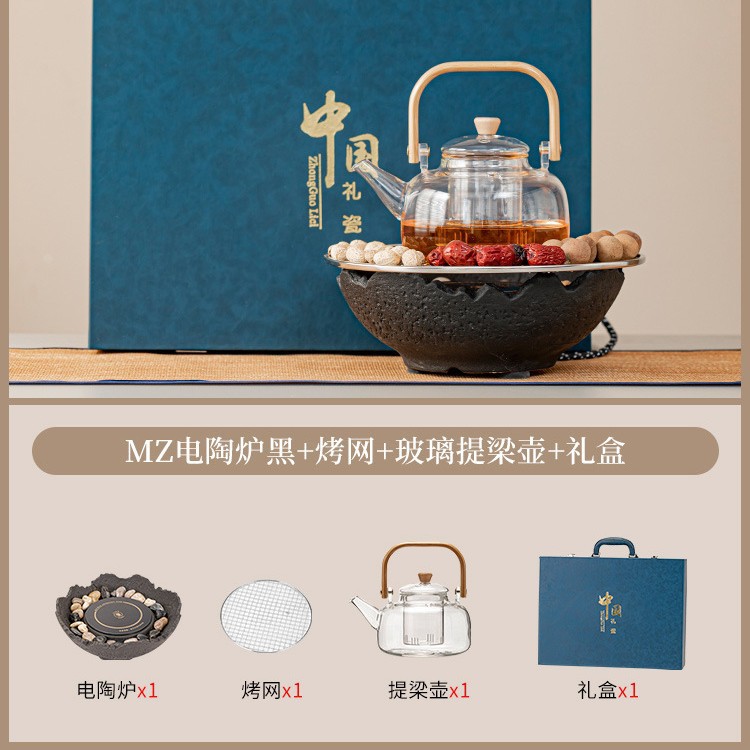 Бесплатный крючок Xiaoyao + электрическая керамическая плита MZ - черный + стеклянная ручка, чайная чашка, тарелка с чайными точками, большой комплект