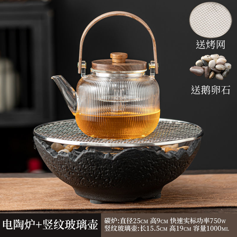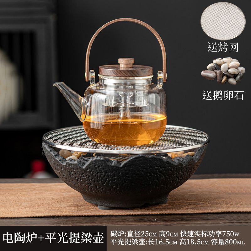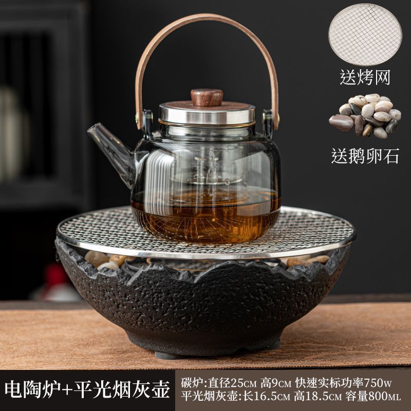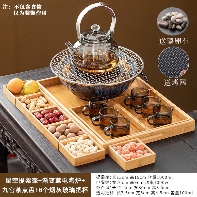 Банка 53 + чайник со стеклянной балкой + электрическая керамическая плита МЗ - черный огненный чайный столик поднос чайная чашка большой комплект