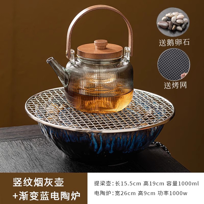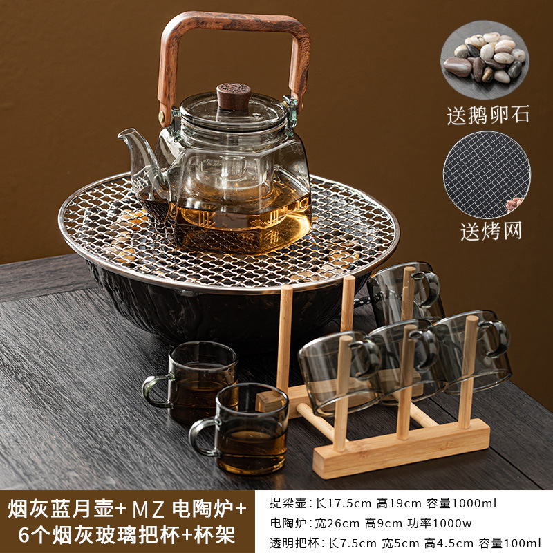 Пепельно-синий лунный горшок + электрическая керамическая плита MZ - черный - чашка с пепельной ручкой 6 с подстаканником