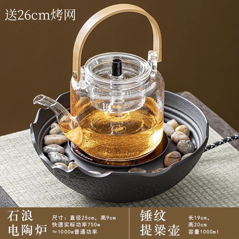 Возможна кастрюля 53 среднеугольной печи, полный комплект + электрическая керамическая плита MZ - черный + горшок со стеклянной ручкой, чайная чашка, набор чайных точек