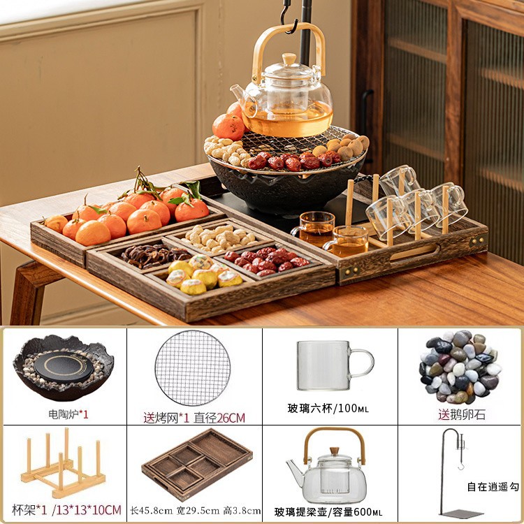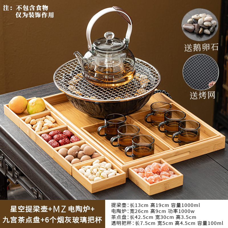 Электрическая керамическая плита MZ-черный+стеклянный чайник+чашка для чая и набор подносов для чая