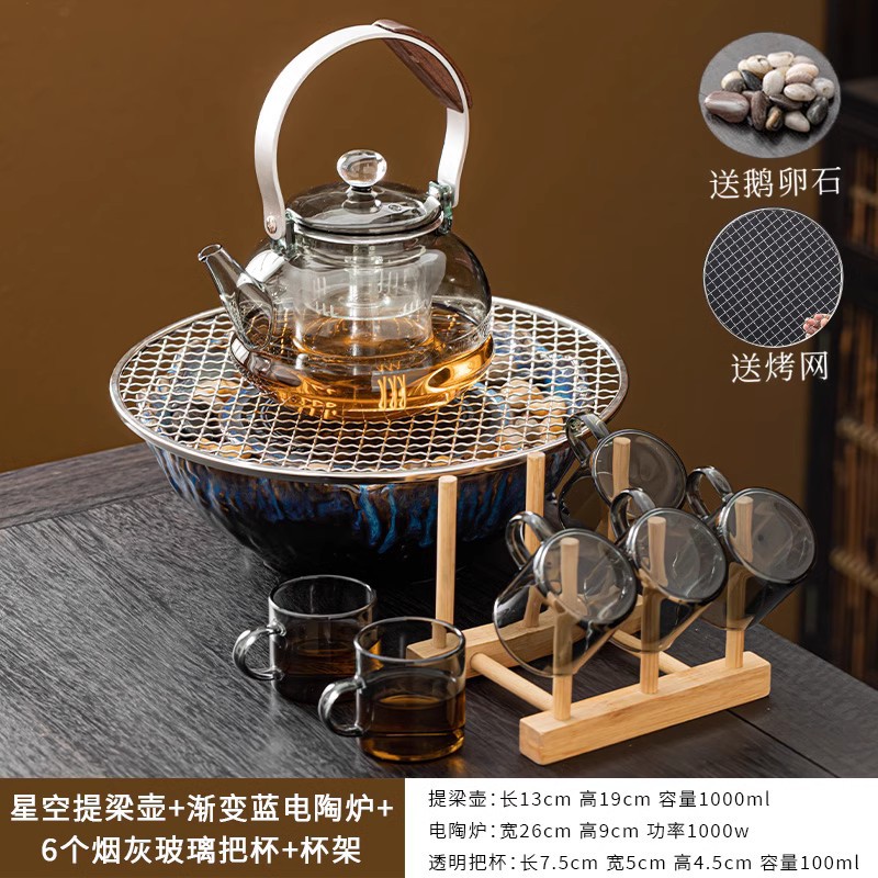 Подъемный горшок Starry Sky + электрическая керамическая плита FK Gradient Blue — набор чайных чашек с тарелкой и чайной крапкой