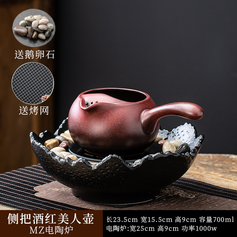 Бордовый косметический горшок с боковой ручкой_MZ электрическая керамическая плита-черный