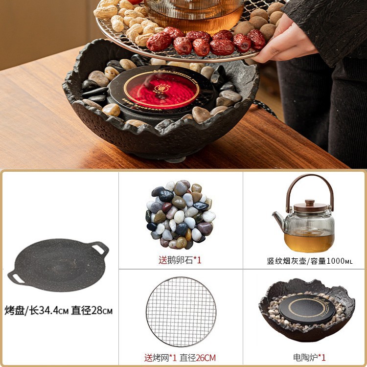 Электрическая керамическая плита с каменной волной [бесплатная галька + сетка для гриля]