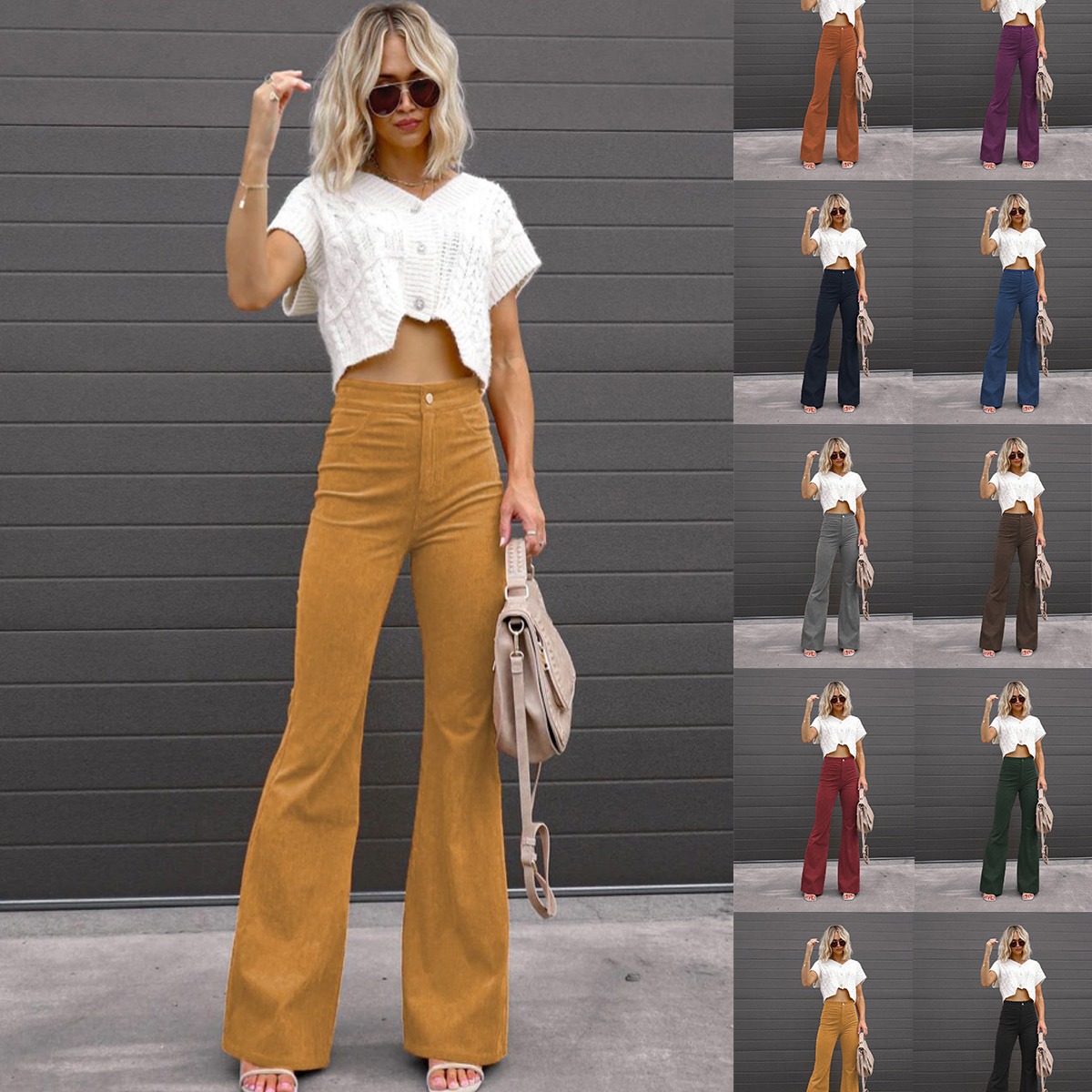 Главная страница > Женские весенние 2023 Новые однотонные вельветовые повседневные брюки Amazon с высокой талией, элегантные микро-штаны, брюки на пуговицах