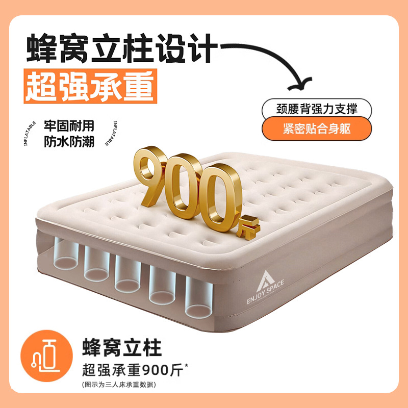 - [Встроенный насос для хранения энергии] Двойной [Трехслойный подъем] Надувная кровать + надувная подушка из персиковой кожи