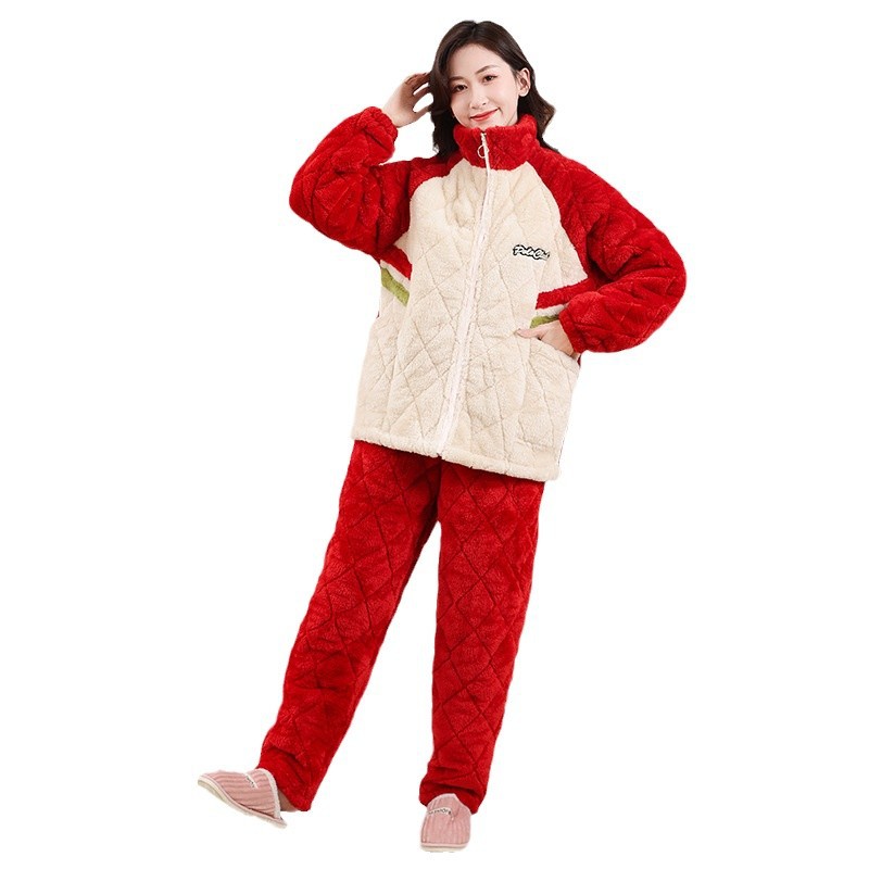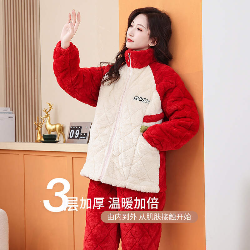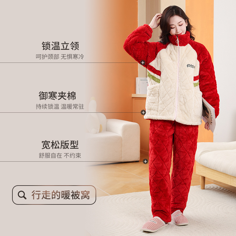 Пара пижамы женский зимний фланель трехслойный утолщение хлопок теплая домашняя одежда мужская повседневная одежда