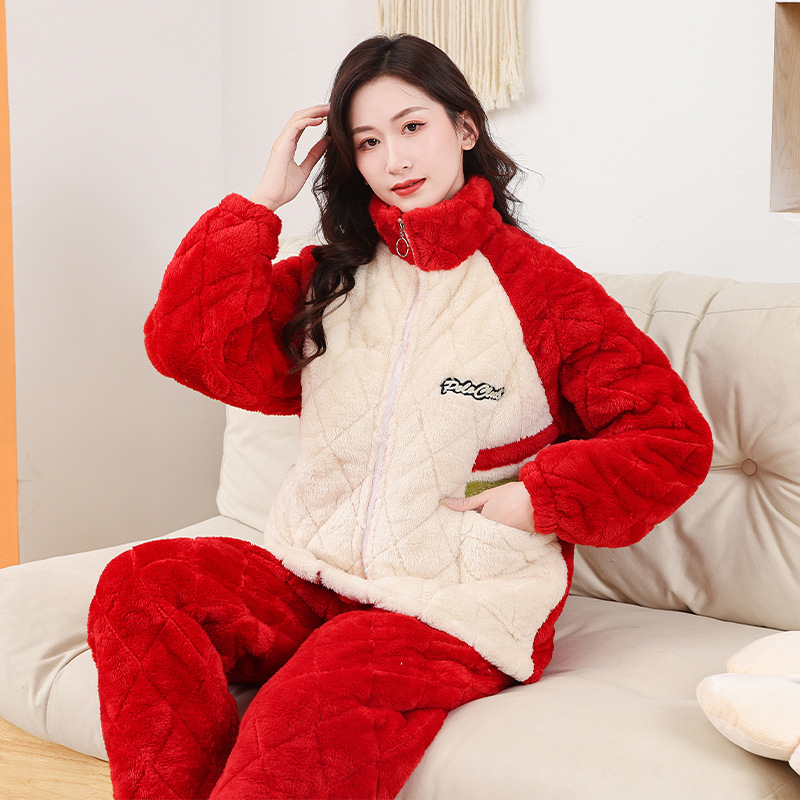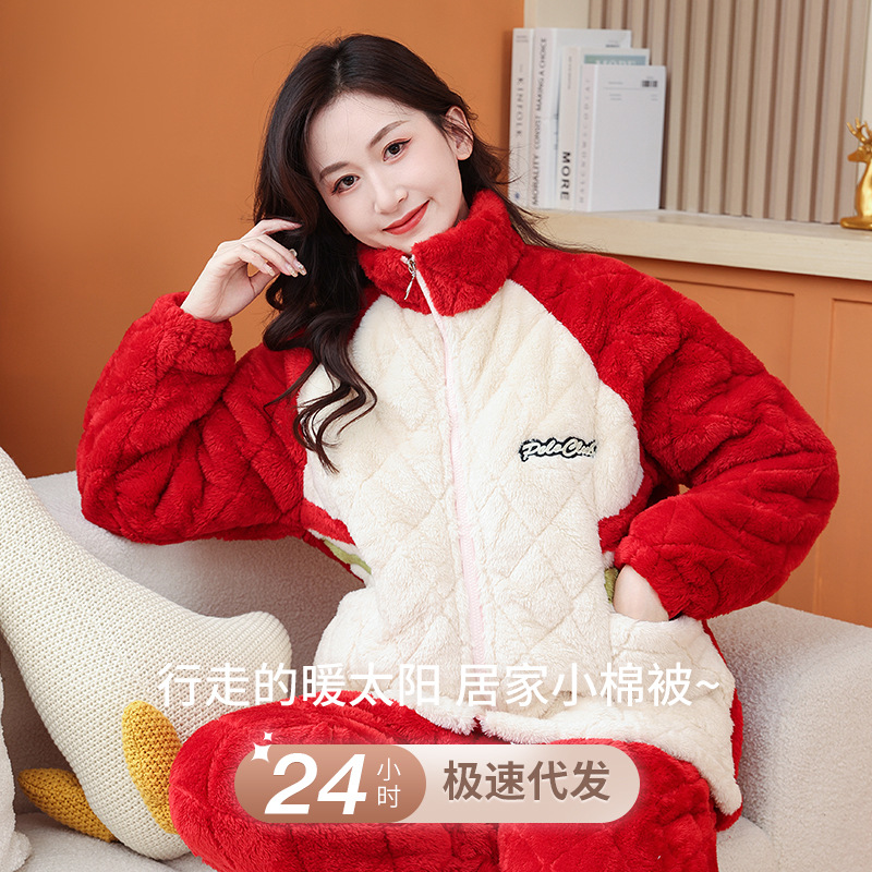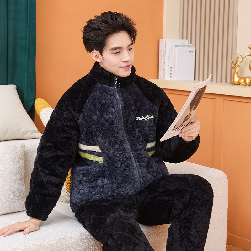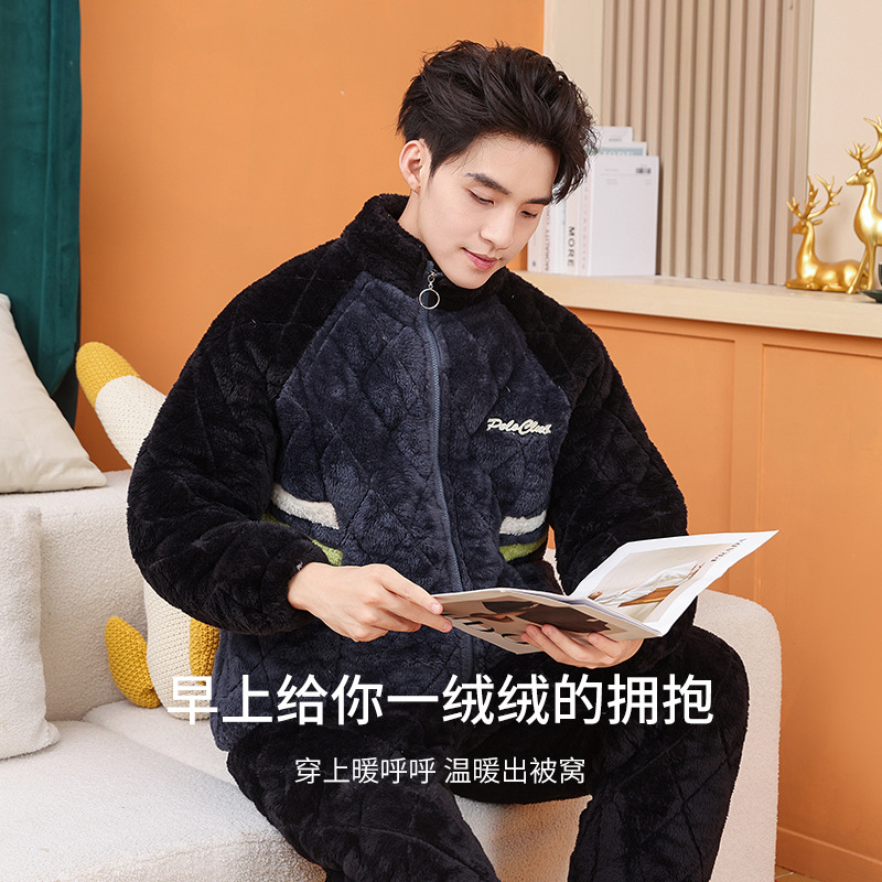 Главная страница > Пара пижамы женский зимний фланель трехслойный утолщение хлопок теплая домашняя одежда мужская повседневная одежда