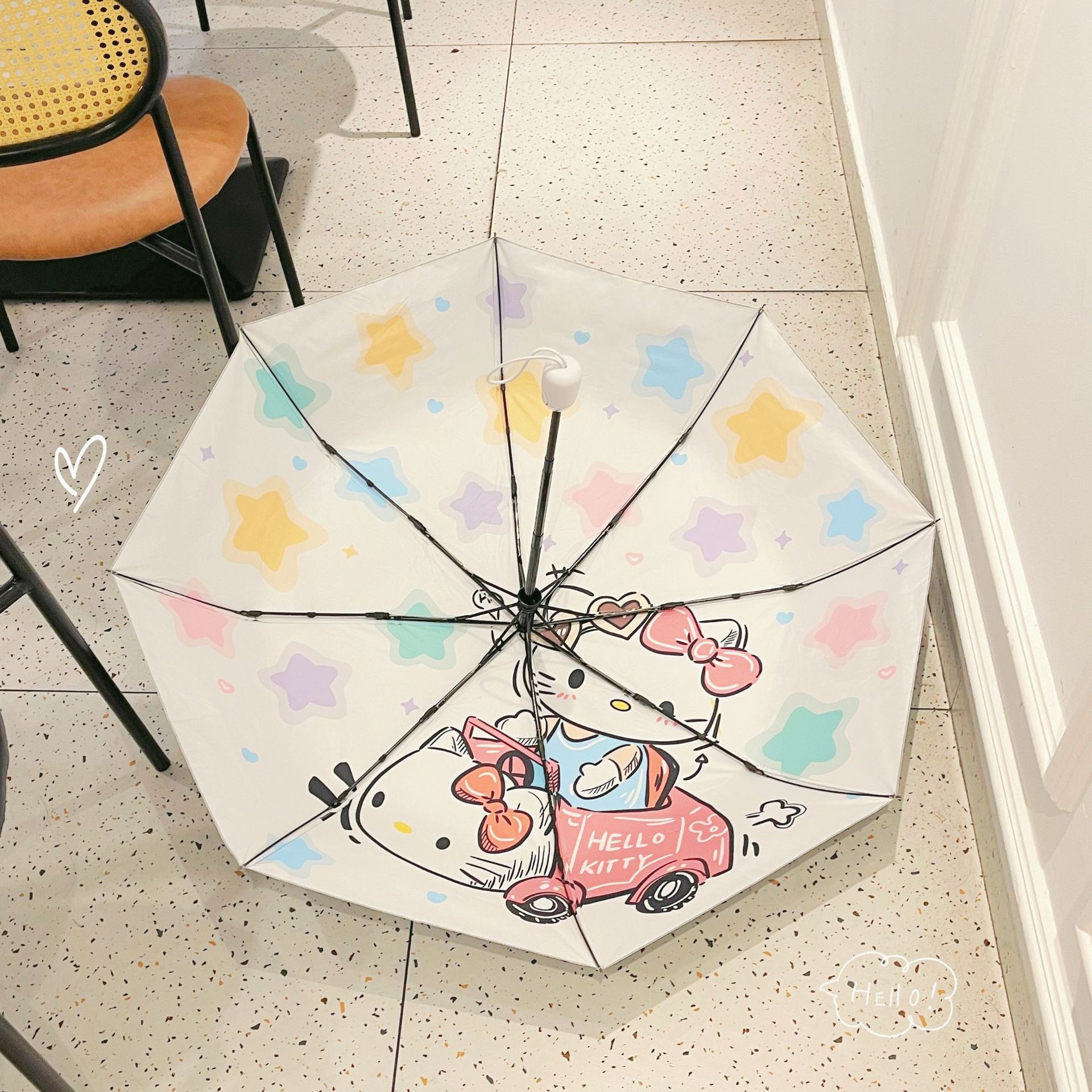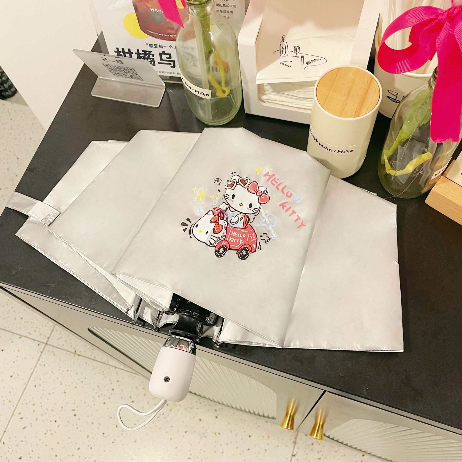 Титан серебро вождения Hello Kitty автоматический зонтик-виниловый утолщение