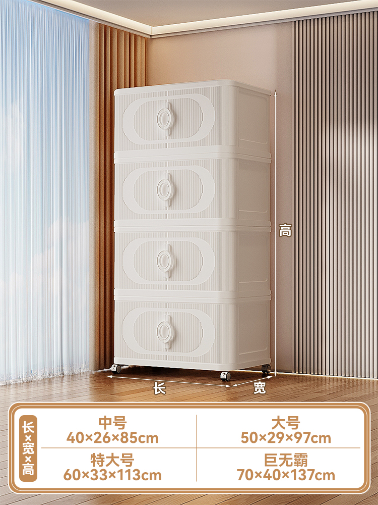 ✷ аааа ✷ 【Кремово-белый】4 уровня | Одна крышка, 4 ящика + 4 колеса 【Дизайн с раздвижной дверцей, роскошная ручка второго поколения】 ✷ аааа ✷