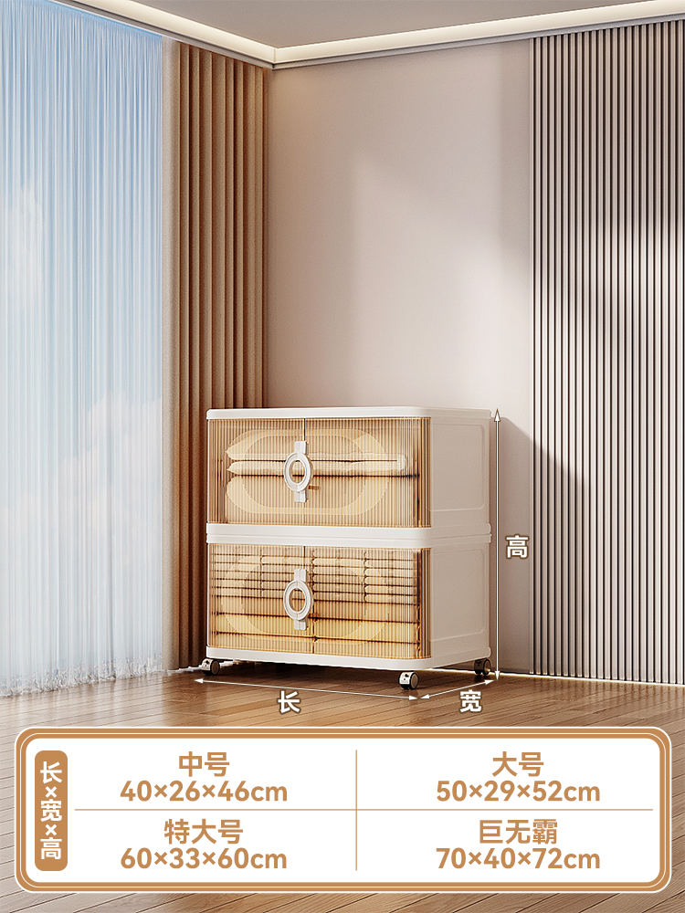 ✷аааа✷【Кремово-белый】2 уровня | Одна крышка, 2 коробки + 4 колеса 【Дизайн с раздвижной дверцей, роскошная ручка второго поколения】✷аааа✷