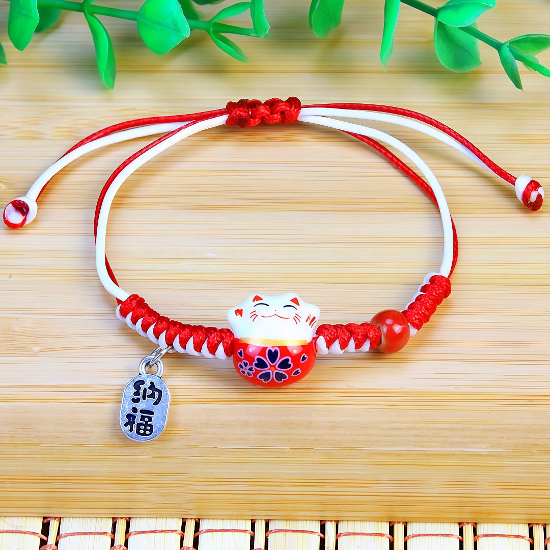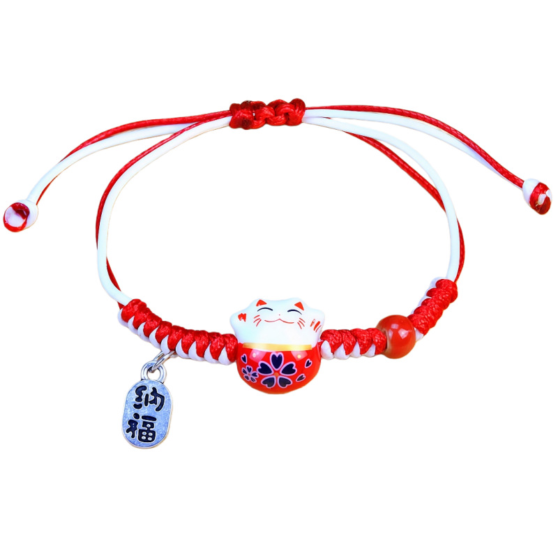 [Серебряный Нафу] Красный кот Браслет из восковой проволоки