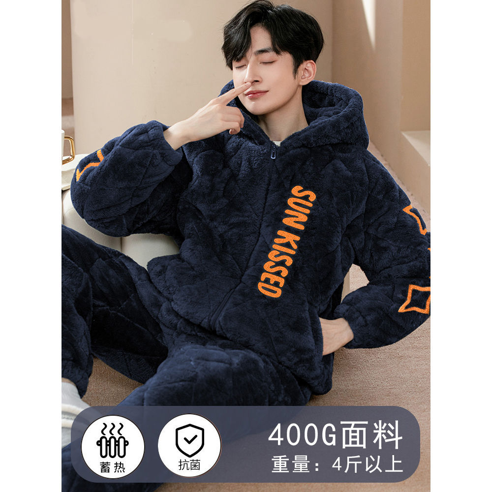 Главная страница > Осенне-зимние мужские пижамы, коралловый бархатный трехслойный утолщенный стеганый теплый молодежный комплект спортивной домашней одежды на флисовой подкладке