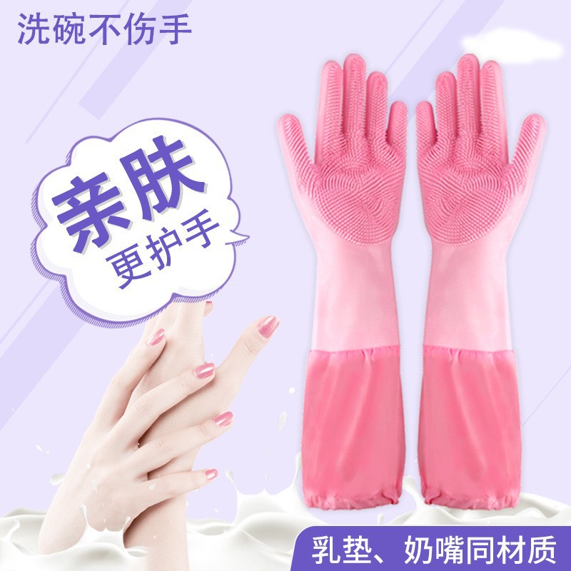 Силиконовые перчатки для купания домашних животных, перчатки для мытья посуды с защитой от укусов, удлиненные бархатные водонепроницаемые женские перчатки для чистки кухни, работы по дому