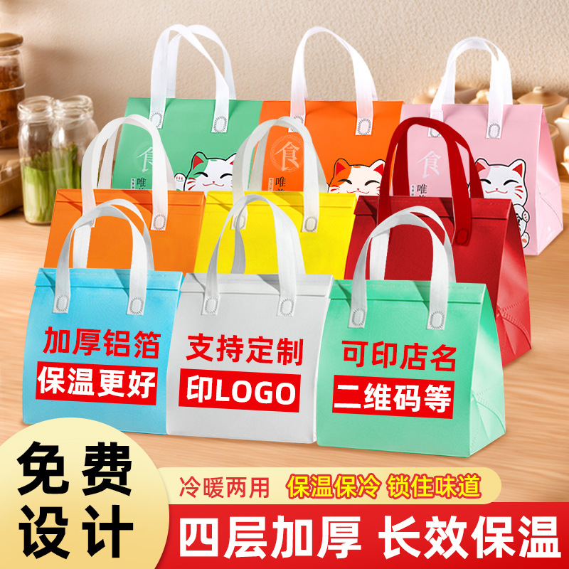 Упаковочный пакет для кейтеринга на вынос из нетканого материала с алюминиевой фольгой для изоляции, пакет для упаковки молочного чая и напитков, изготовленный на заказ с печатью логотипа