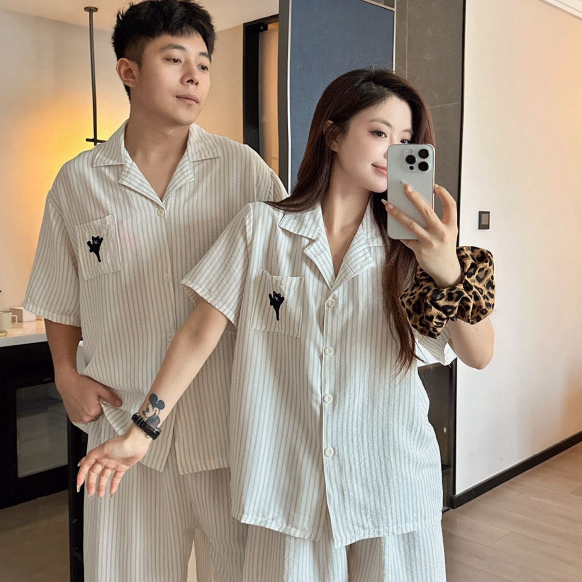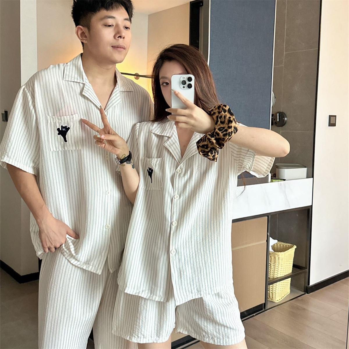 Главная страница > ДЖЕЙНА. ® Мягкие однотонные полосатые пижамы для пар, летние полосатые пижамы с короткими рукавами в виде таксы для мужчин и женщин