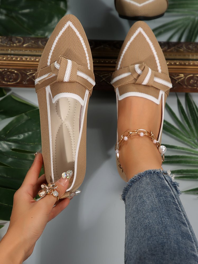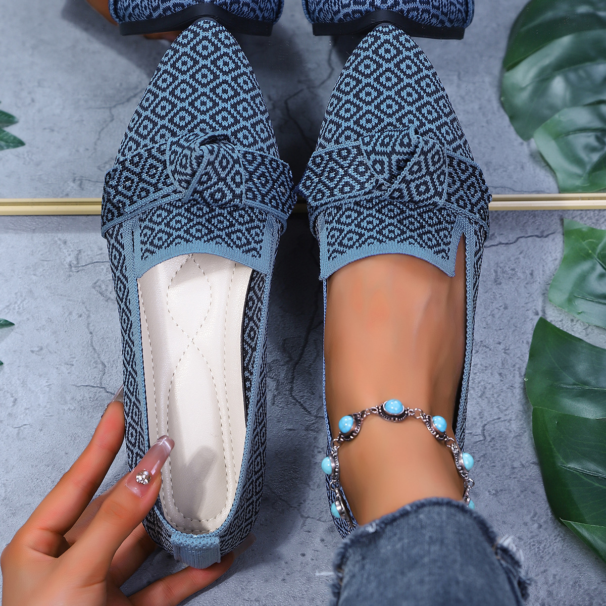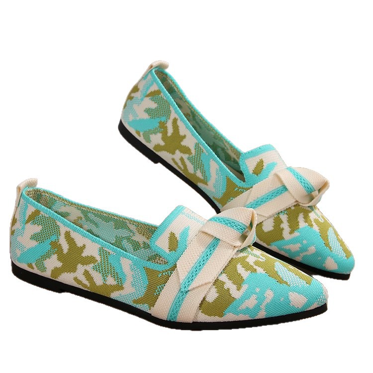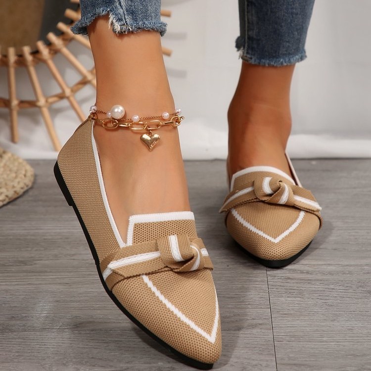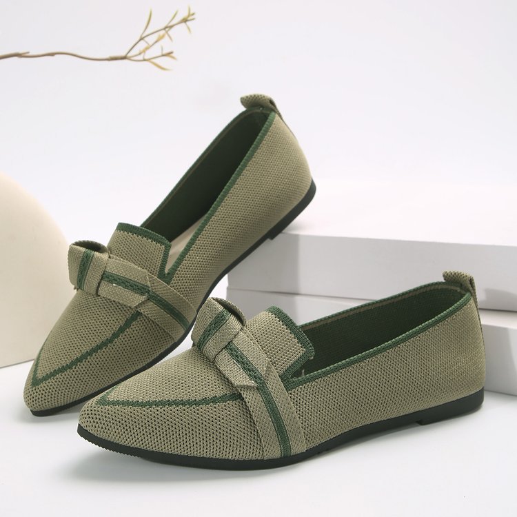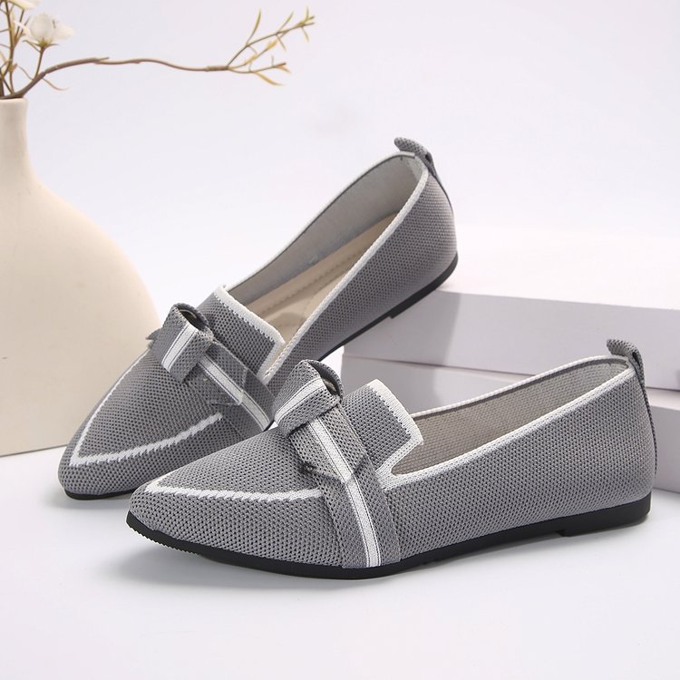Главная страница > Производитель оптом продает новые стильные женские туфли из трикотажа на весну и осень, с острым носком, для похудения, женские повседневные туфли на плоской подошве без шнуровки с бантом.