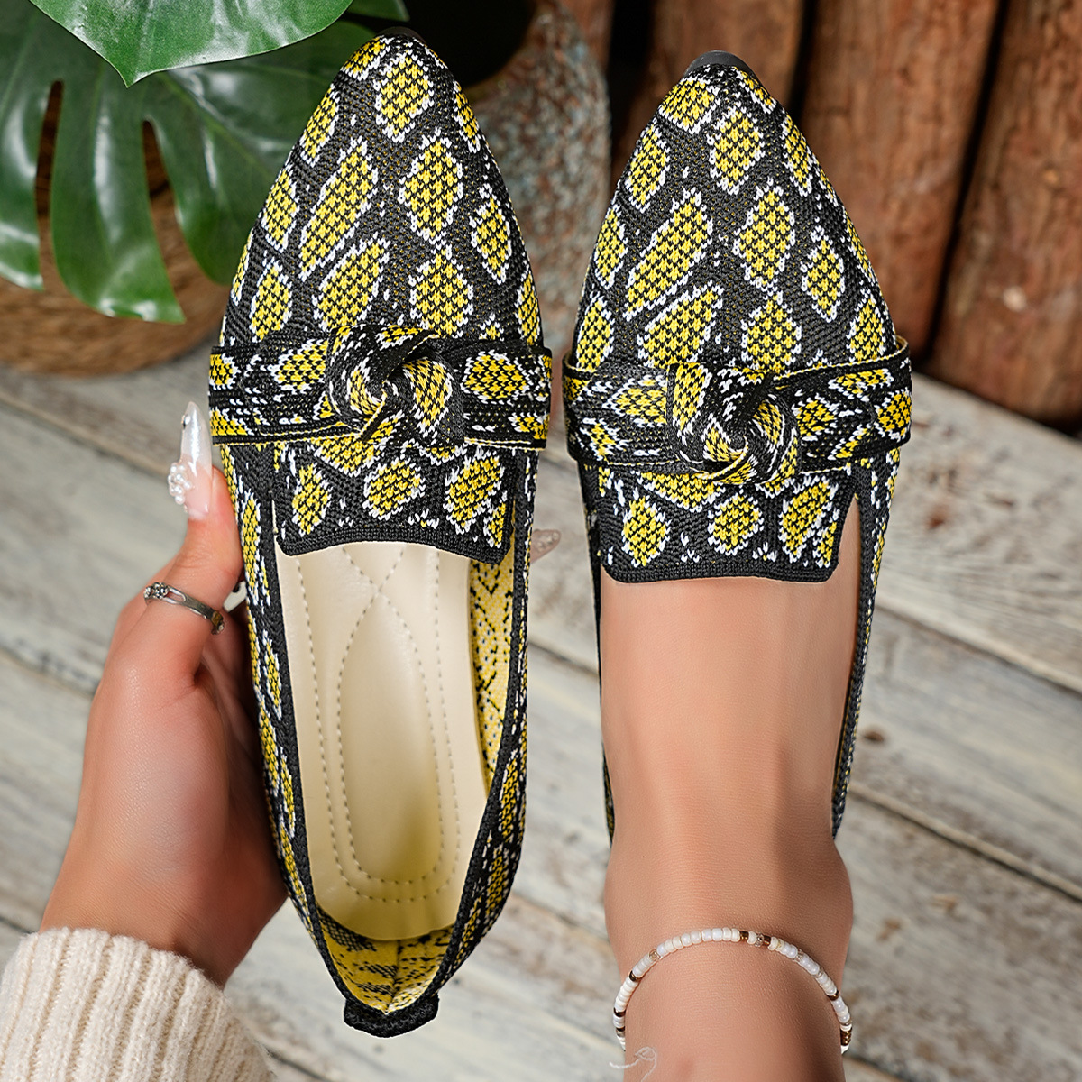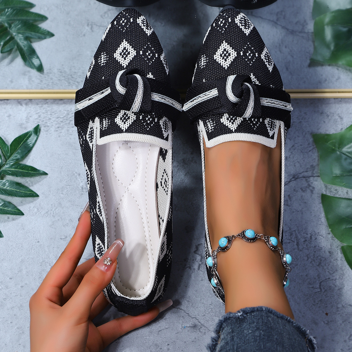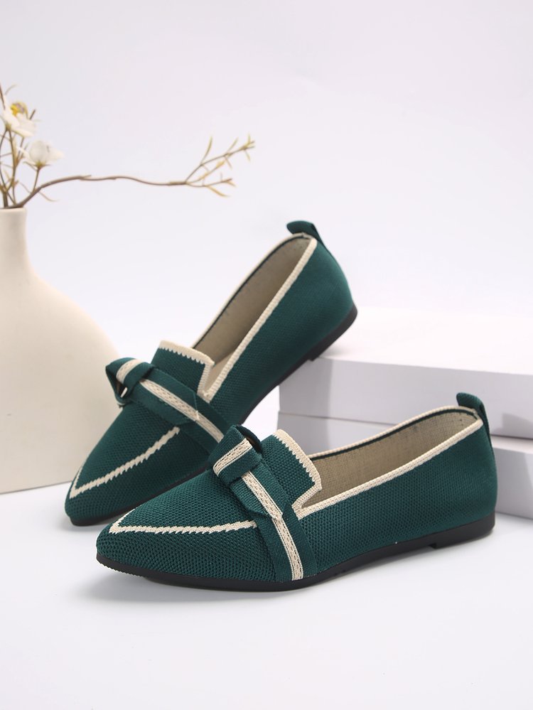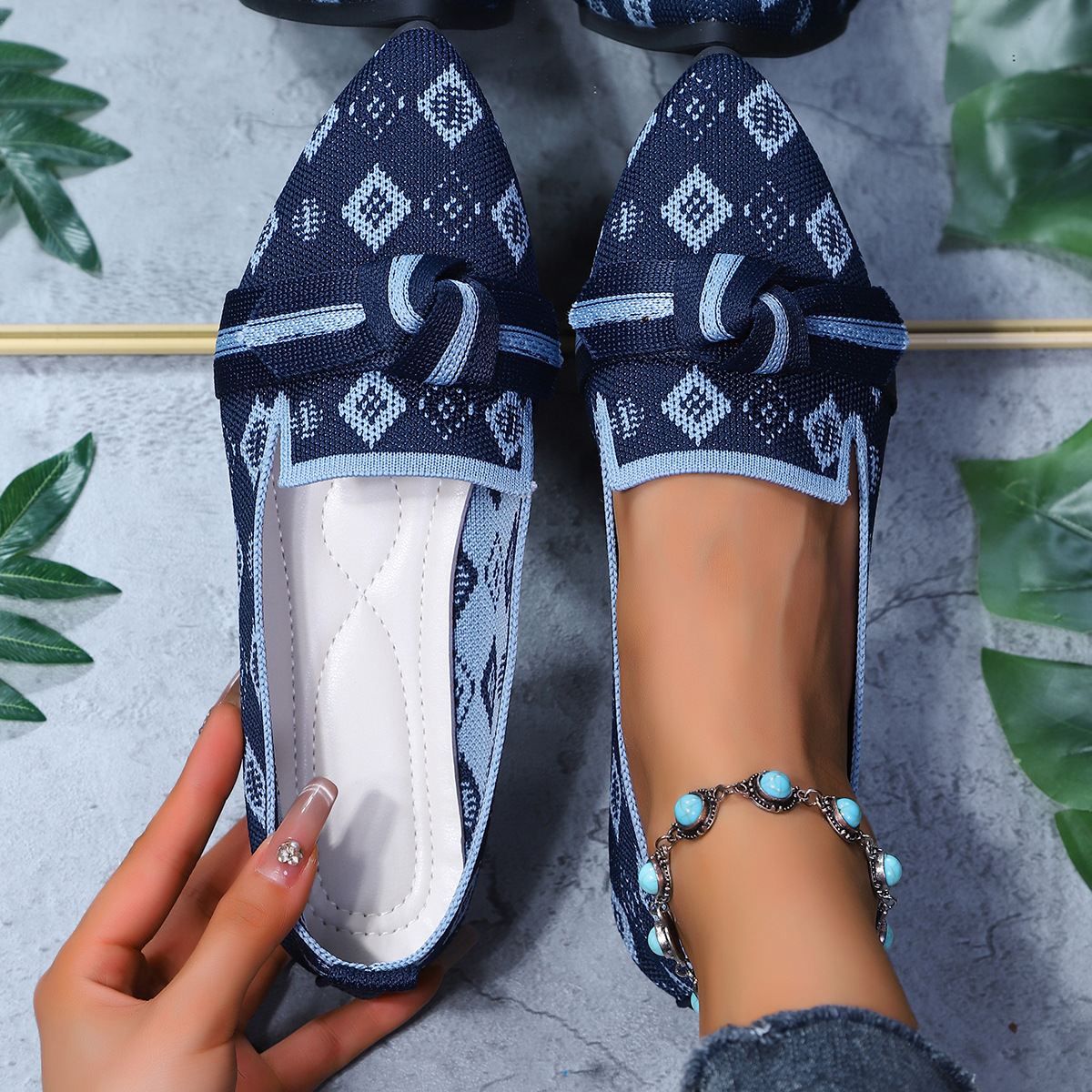 Главная страница > Производитель оптом продает новые стильные женские туфли из трикотажа на весну и осень, с острым носком, для похудения, женские повседневные туфли на плоской подошве без шнуровки с бантом.