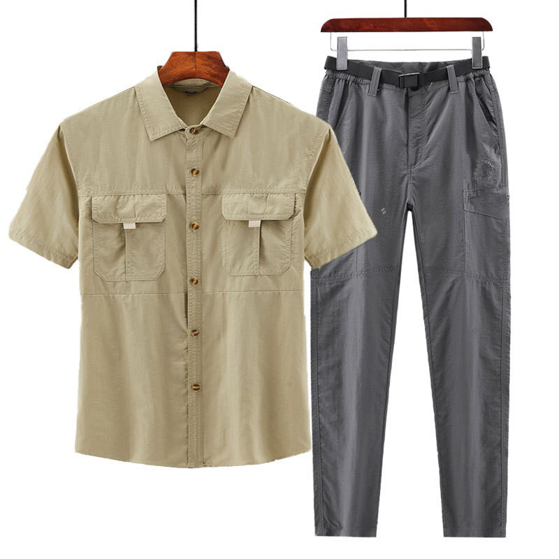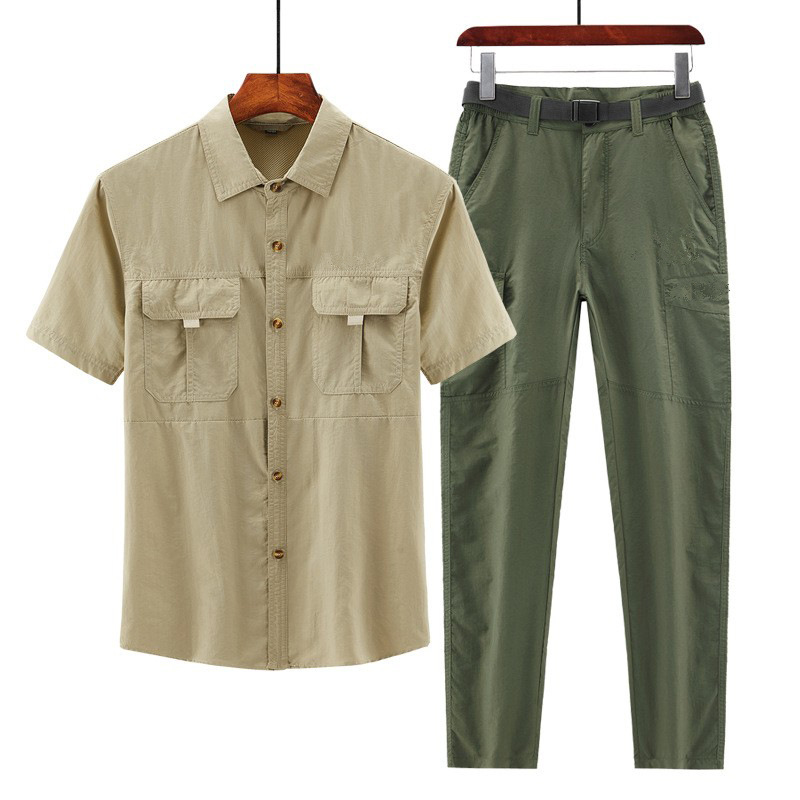 Костюм хаки с коротким рукавом (пальто Хака + армейские зеленые брюки)