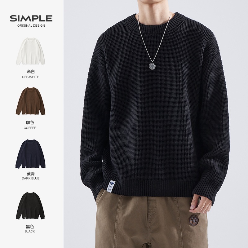 Главная страница > Hansca Ленивый ветер свитер мужской осень и зима новый свободный сплошной сплошной круглый воротник пуловер с вязаной курткой мужской
