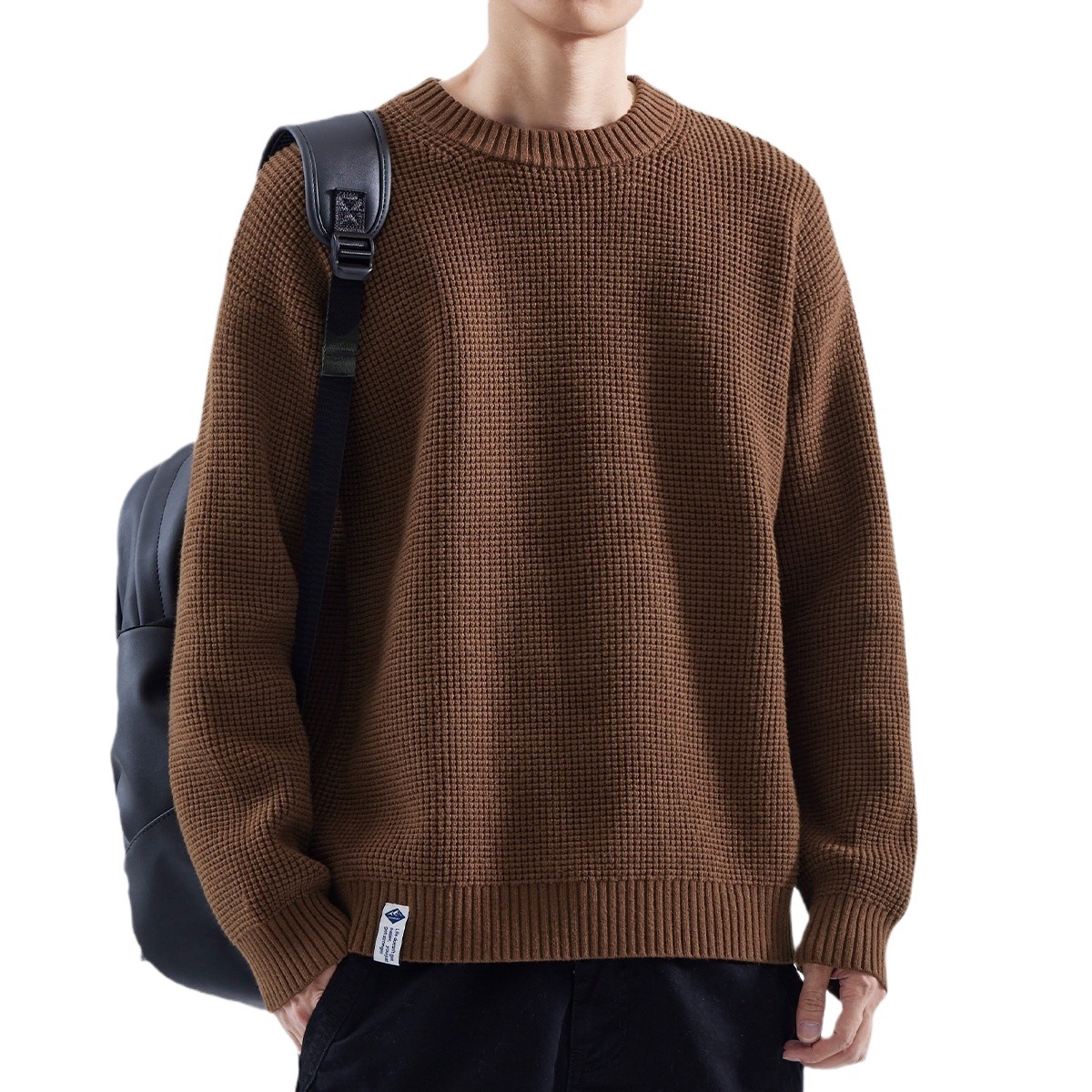Hansca Ленивый ветер свитер мужской осень и зима новый свободный сплошной сплошной круглый воротник пуловер с вязаной курткой мужской