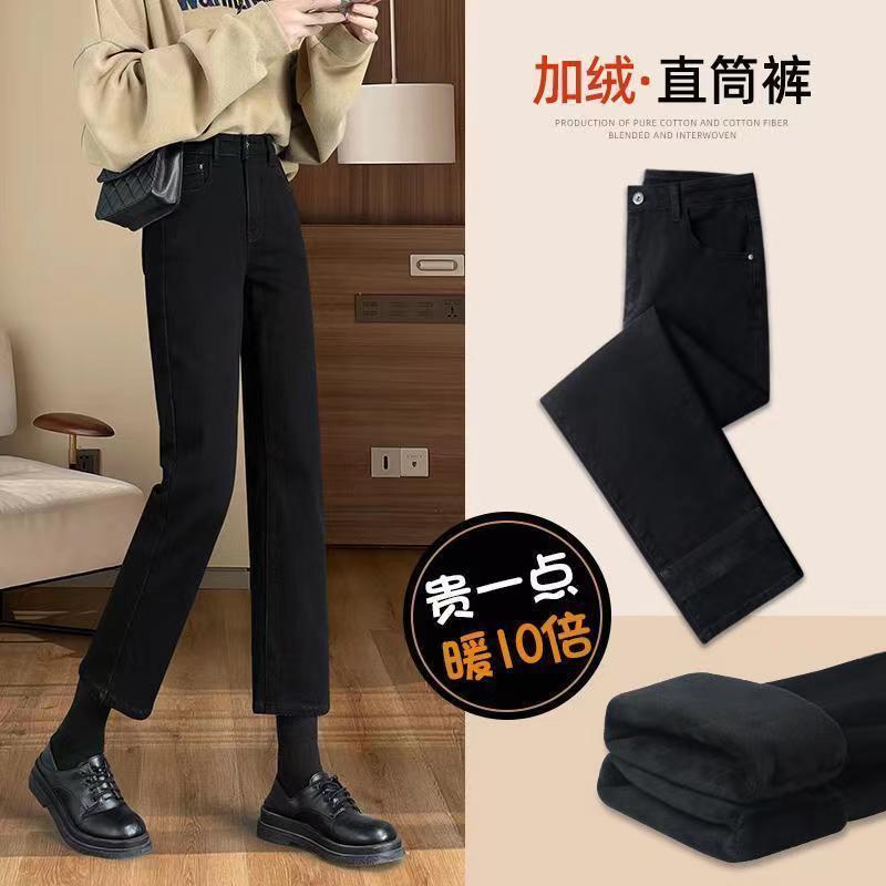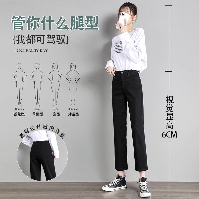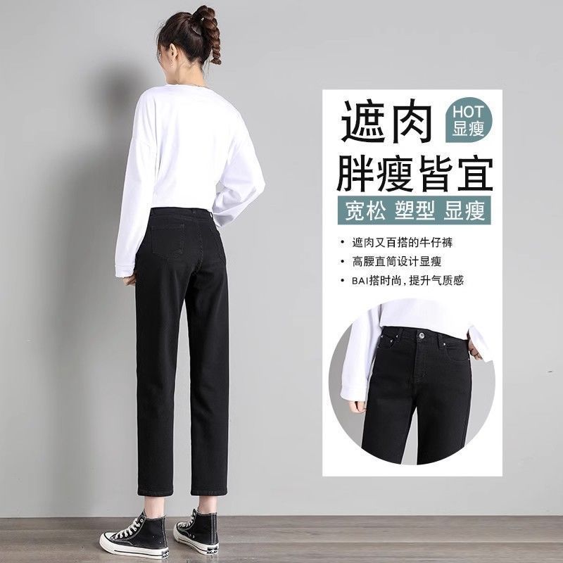 Главная страница > Трубочные брюки женские новые весенние и осенние зимние высокие талии тонкие большие размеры свободные девять очков маленькие черные прямые джинсовые брюки