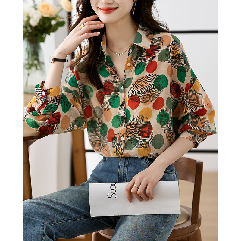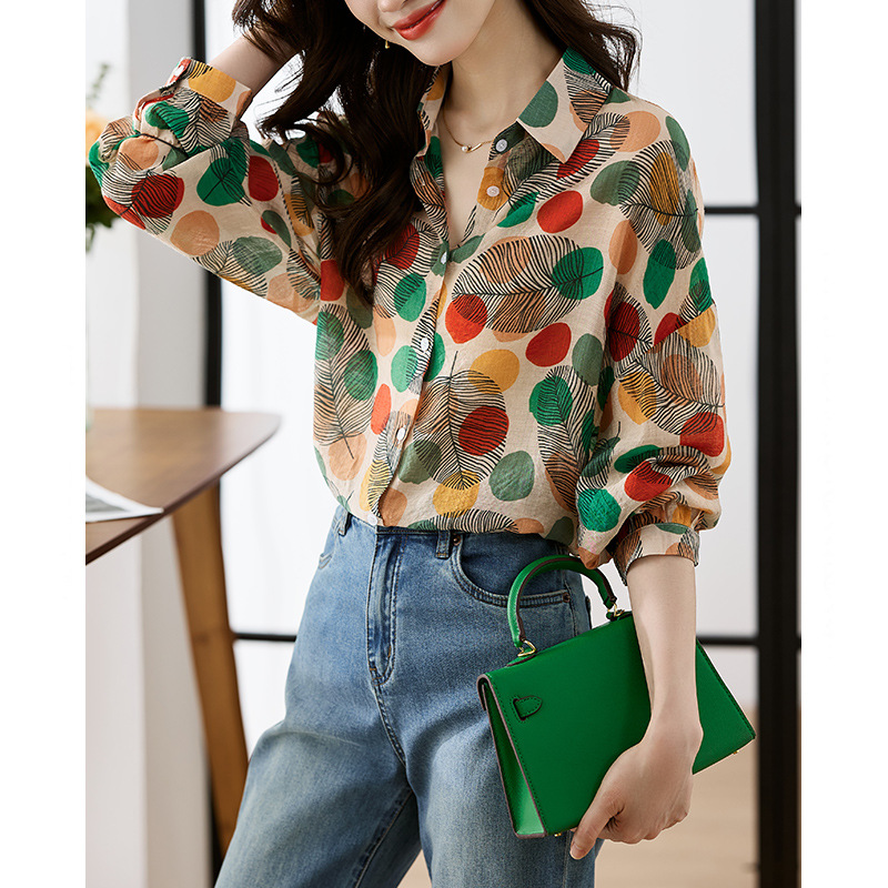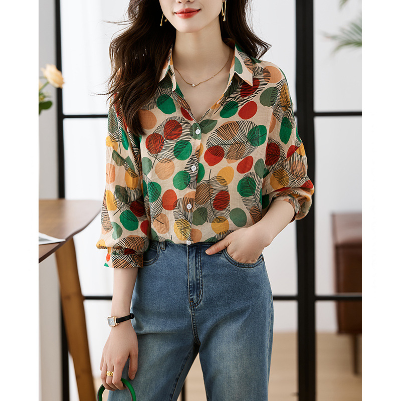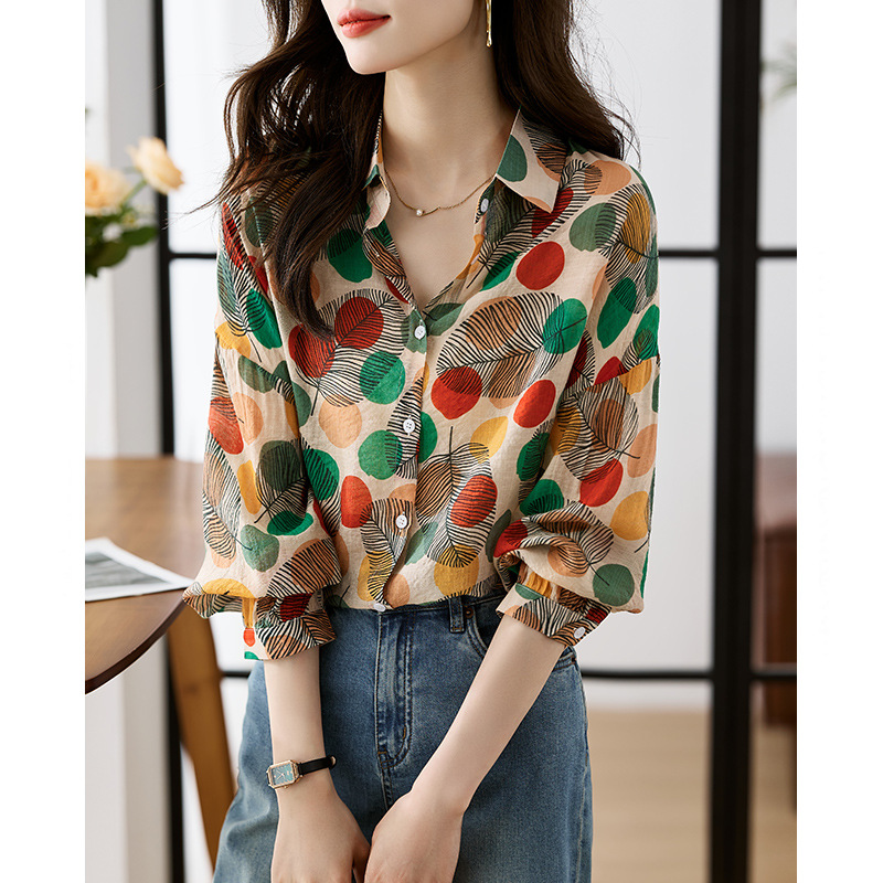 Иностранные повседневные осенние новые женские лацканы цветные шифоновые топы кардиган рубашка рубашка нижняя рубашка