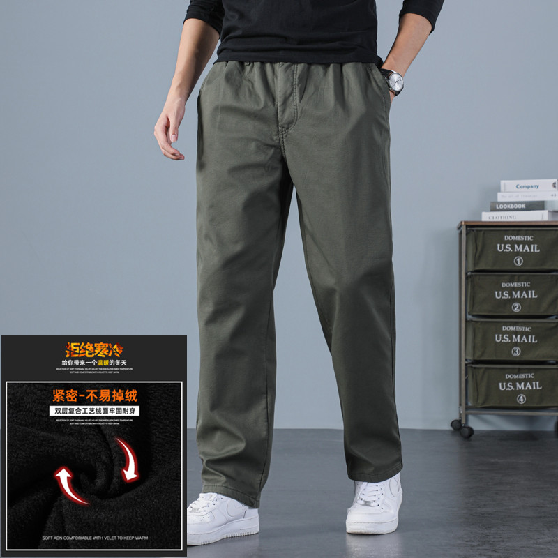 Главная страница > Зимние мужские повседневные брюки на флисовой подкладке, утолщенные Обычные прямые брюки, Свободные повседневные брюки-карго больших размеров для полных мужчин