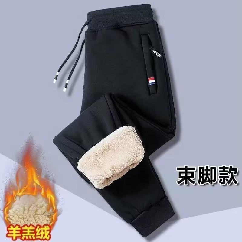 Главная страница > Зимние мужские утолщенные брюки на флисовой подкладке, зимние мужские свободные спортивные штаны больших размеров с завязками на щиколотке, Теплые повседневные брюки из овечьей шерсти