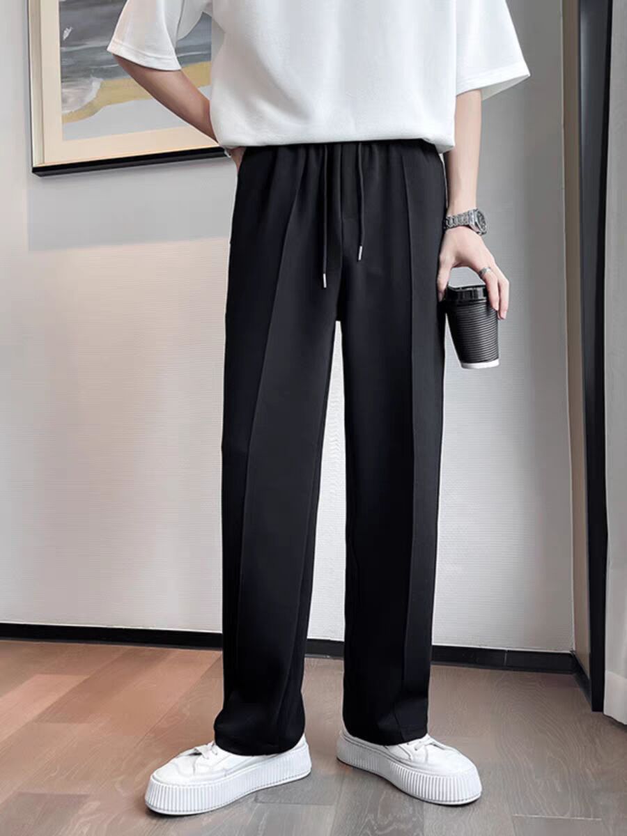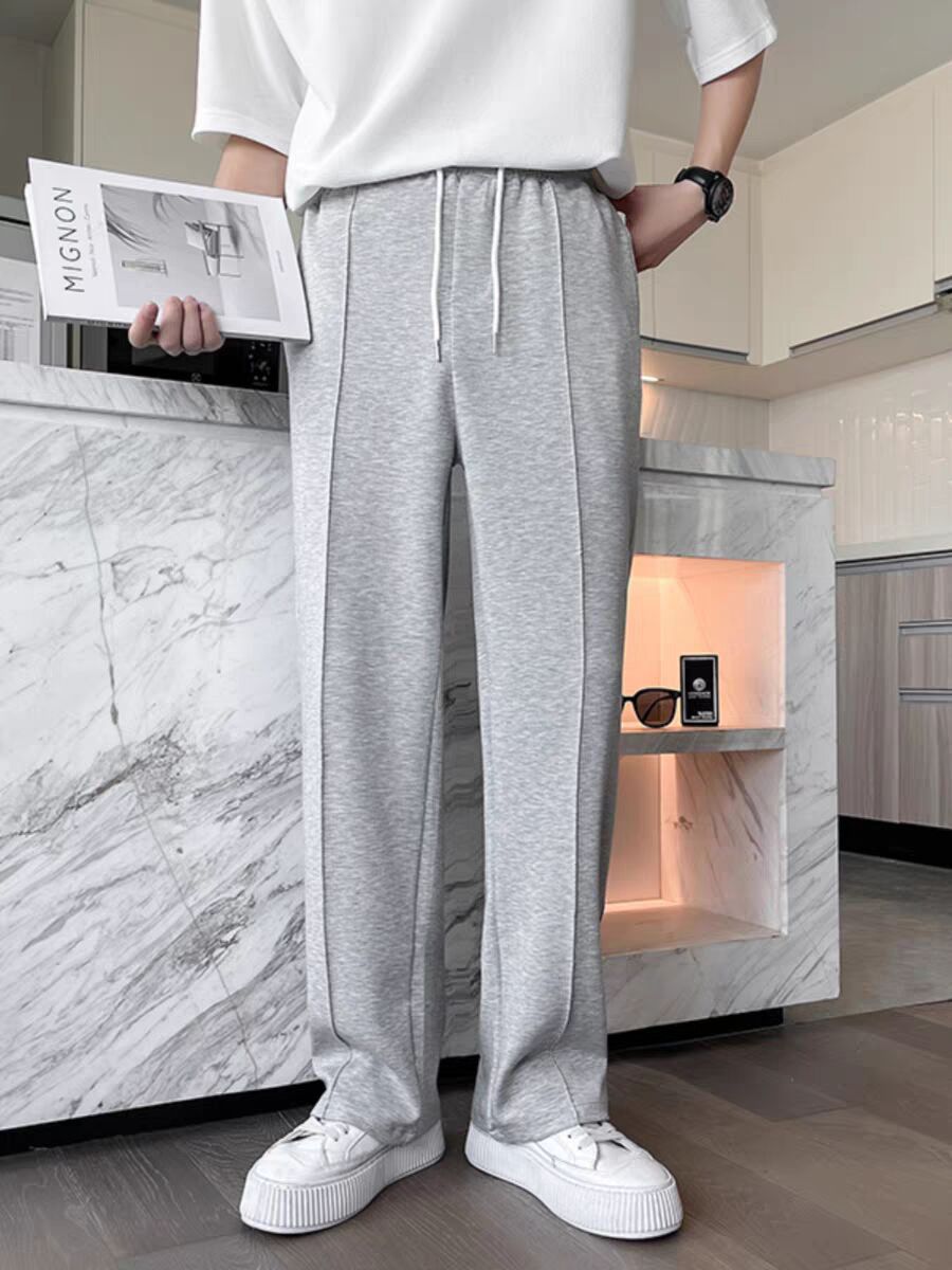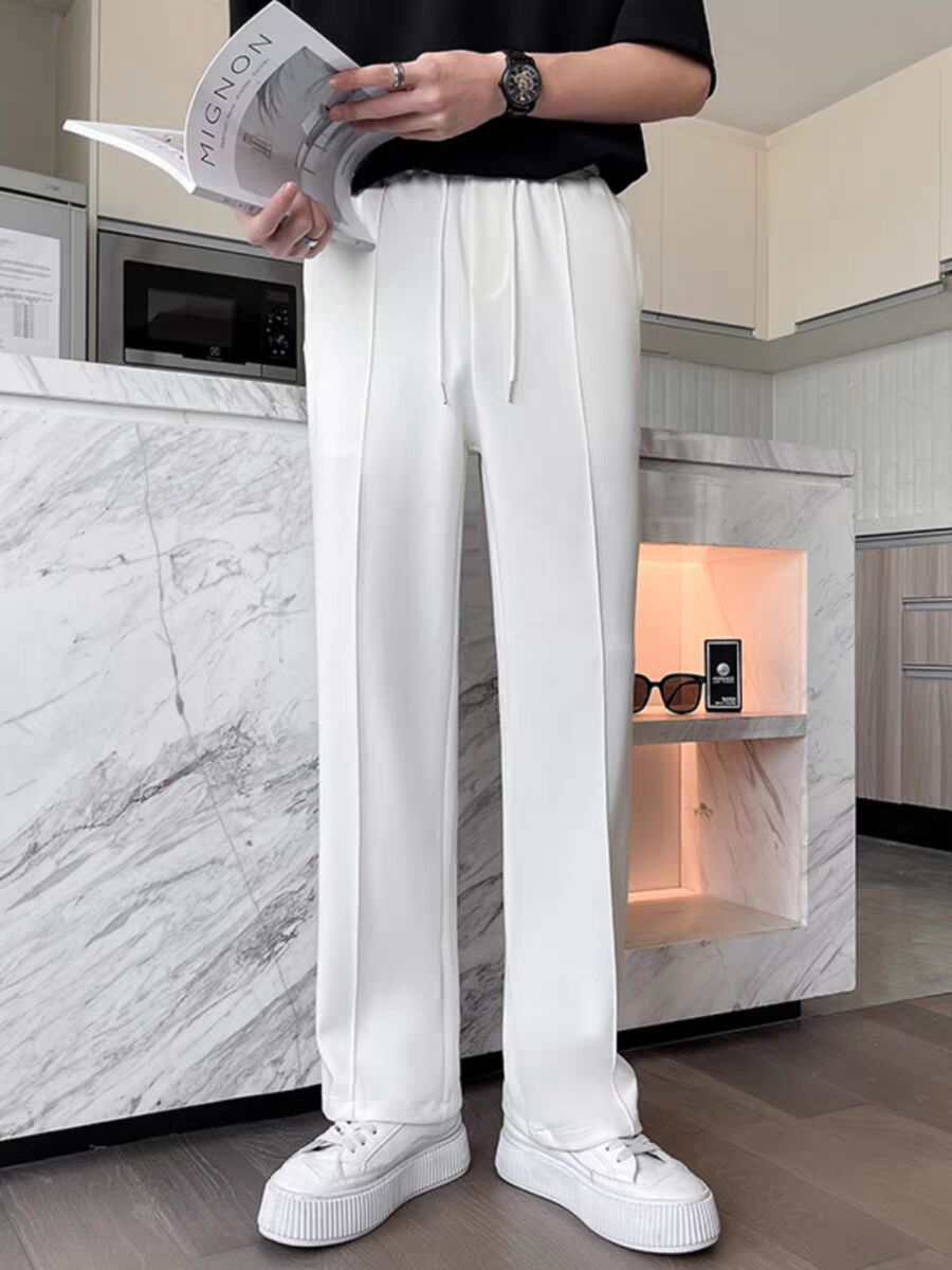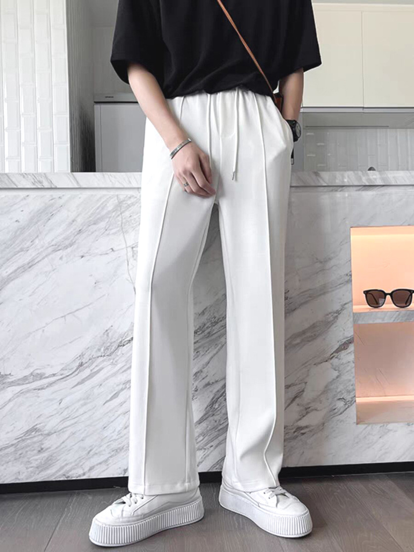 Главная страница > Легкий ветер белые спортивные брюки для мужчин высокого уровня светлые линии свободные прямые брюки шелковистые и мягкие повседневные брюки