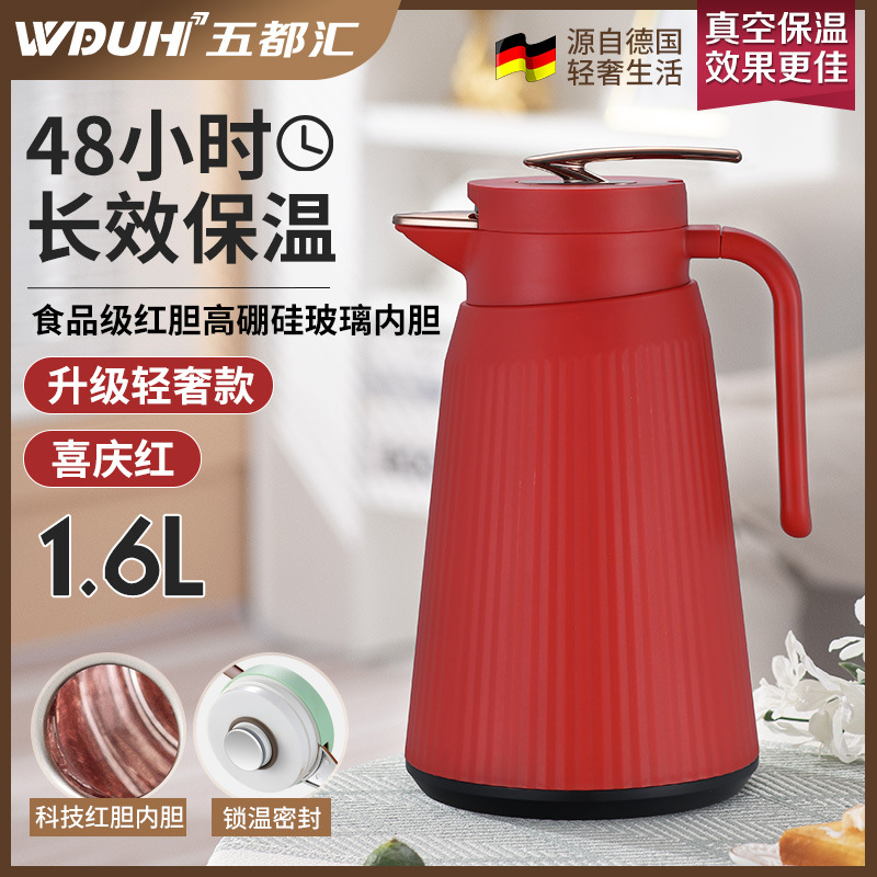 1,6л праздничный красный (пищевой антибактериальный вкладыш из нержавеющей стали 316L), вакуумный термос-чайник