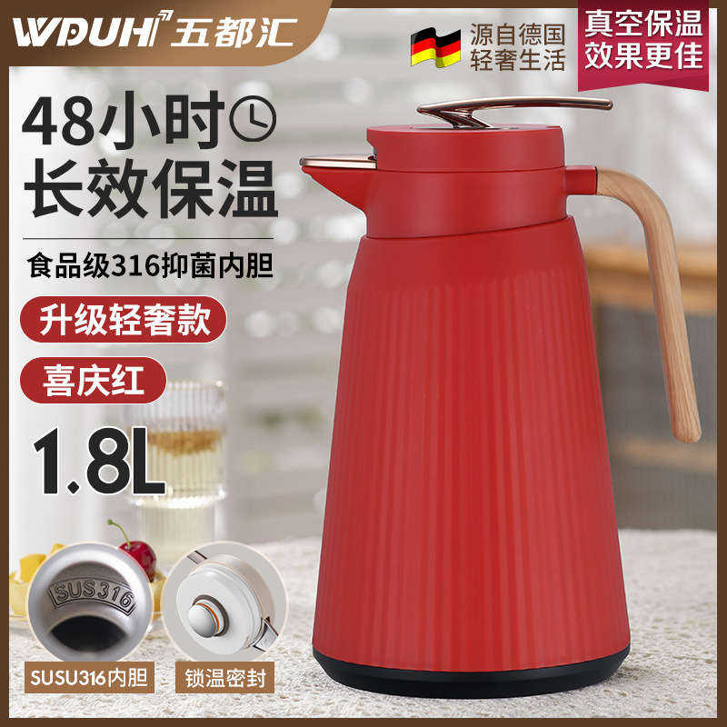 Праздничный красный (пищевой антибактериальный вкладыш из нержавеющей стали 316L), вакуумный термос-чайник