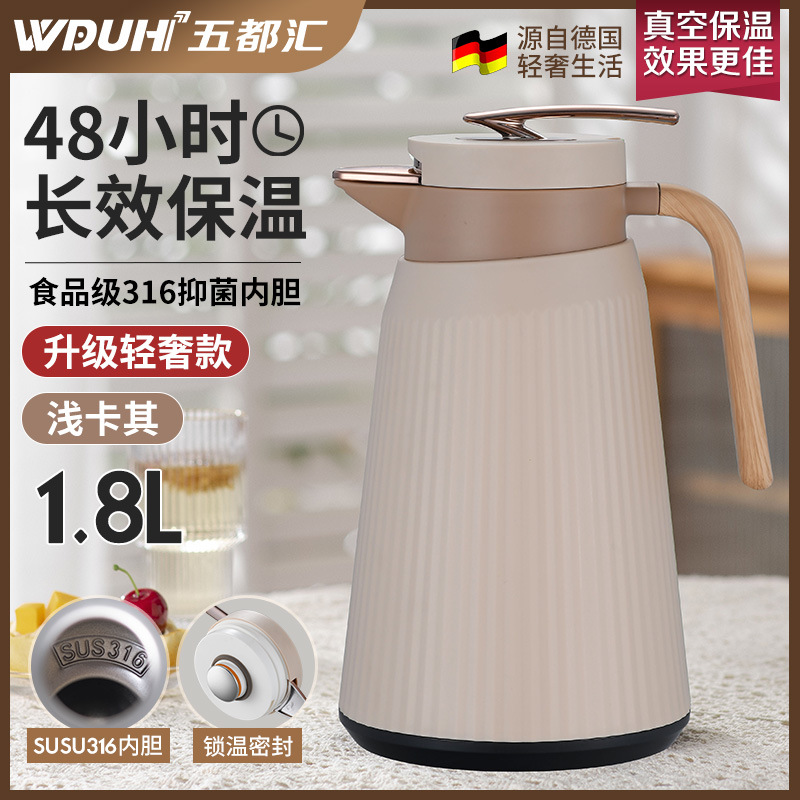 Легкий хаки объемом 1,8 л (пищевая антибактериальная подкладка из нержавеющей стали 316L), вакуумный термос-чайник