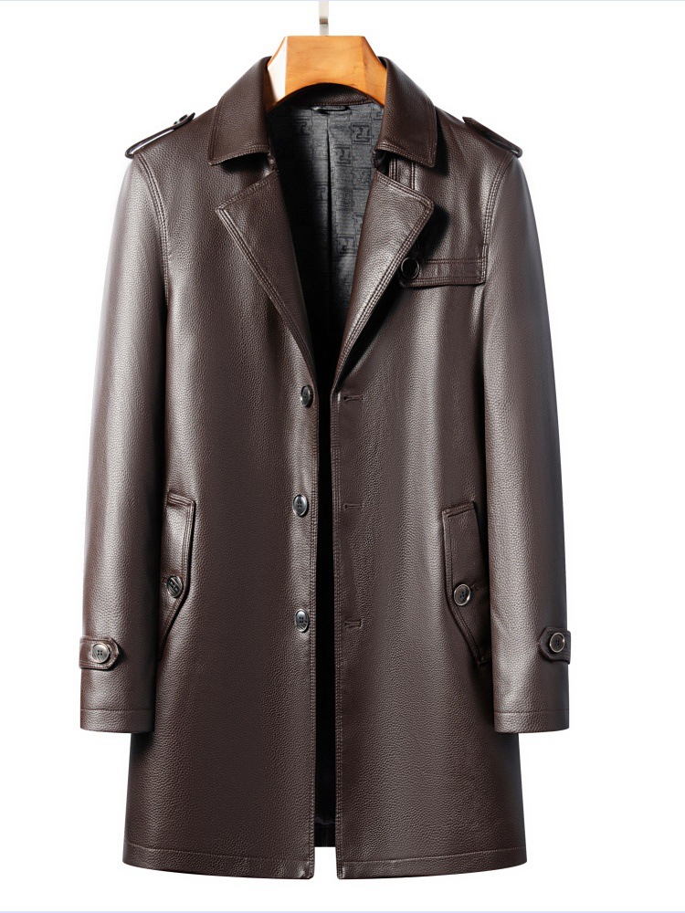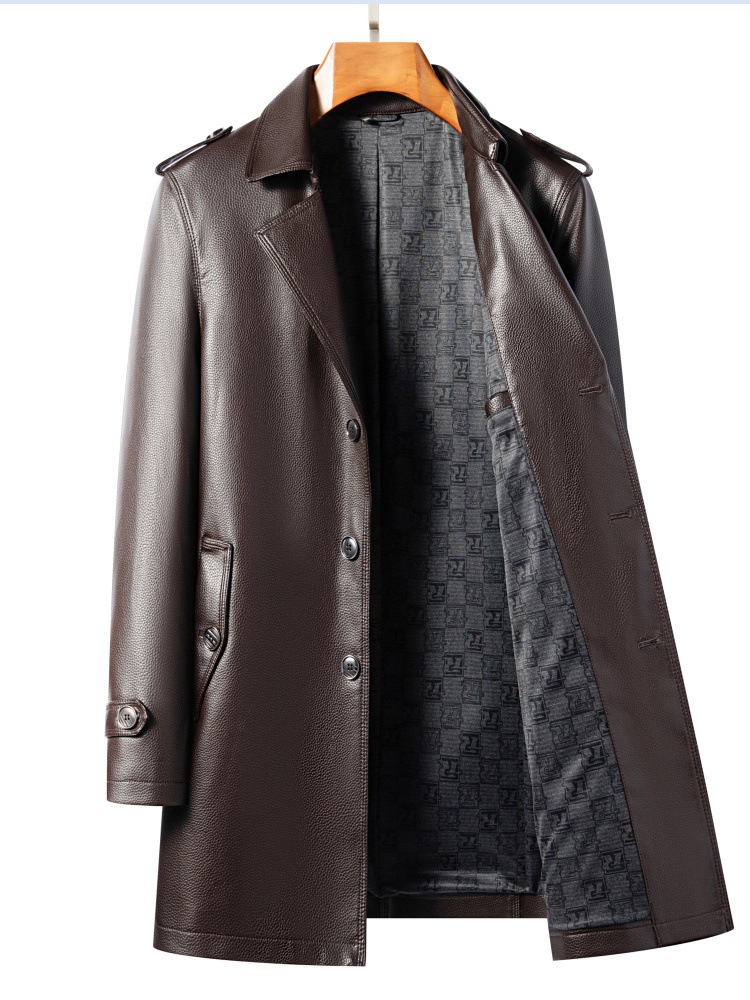 Кожаная куртка Haining для мужчин среднего возраста, плащ средней длины с воротником из искусственной кожи, деловая повседневная кожаная куртка, пальто для папы.