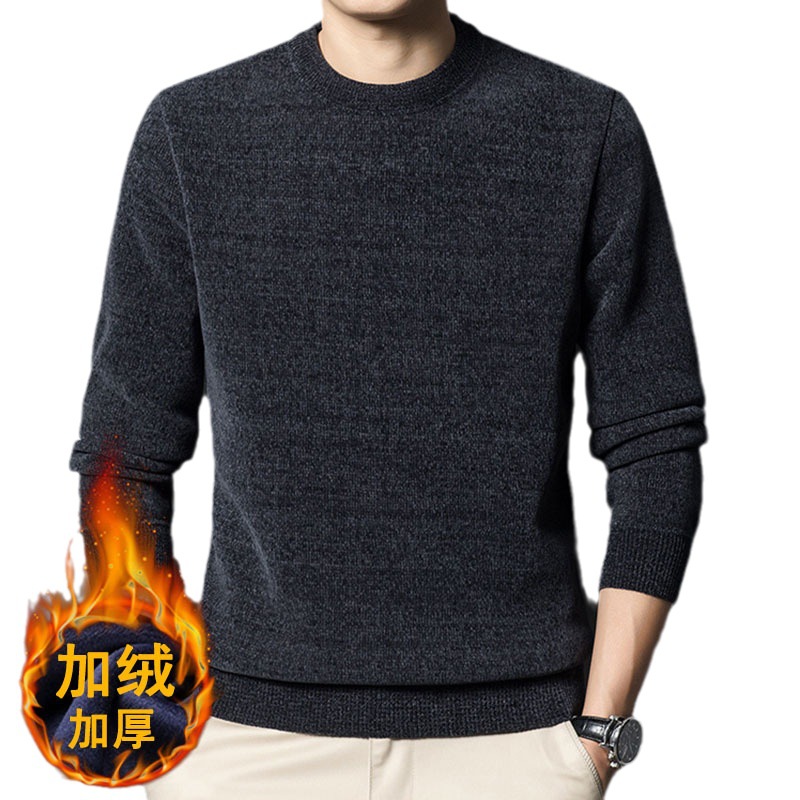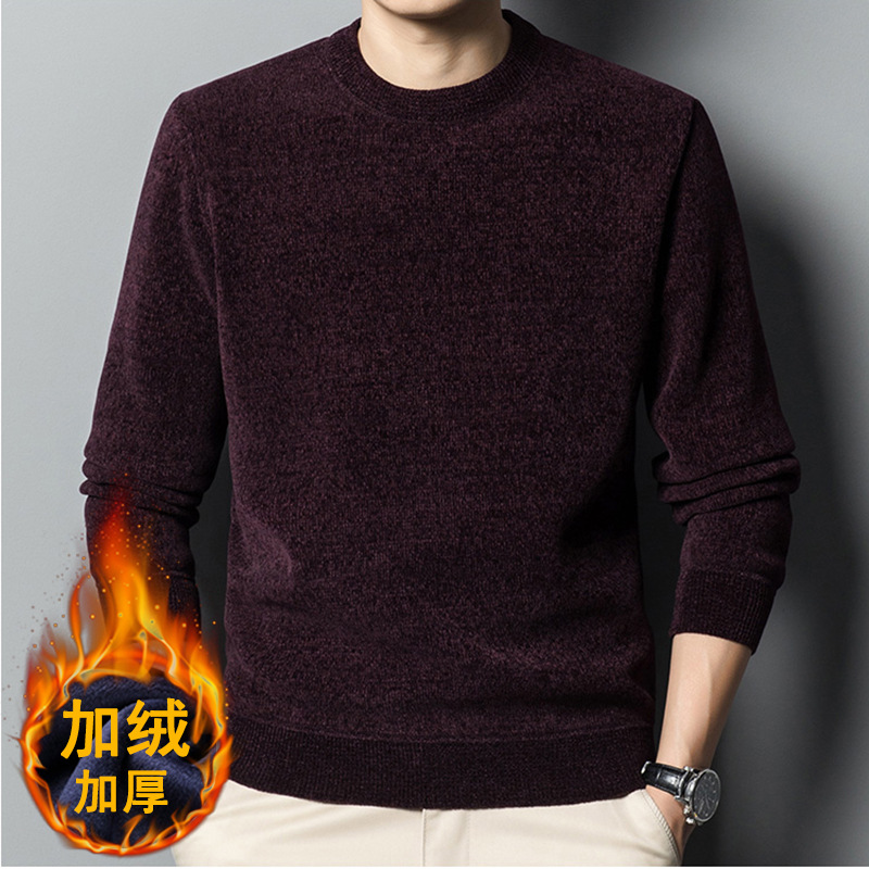 Главная страница > Свитер с флисовой подкладкой из синели, Мужская теплая однотонная Базовая рубашка, утолщенная внутренняя часть с круглым вырезом, мужские волосы среднего возраста