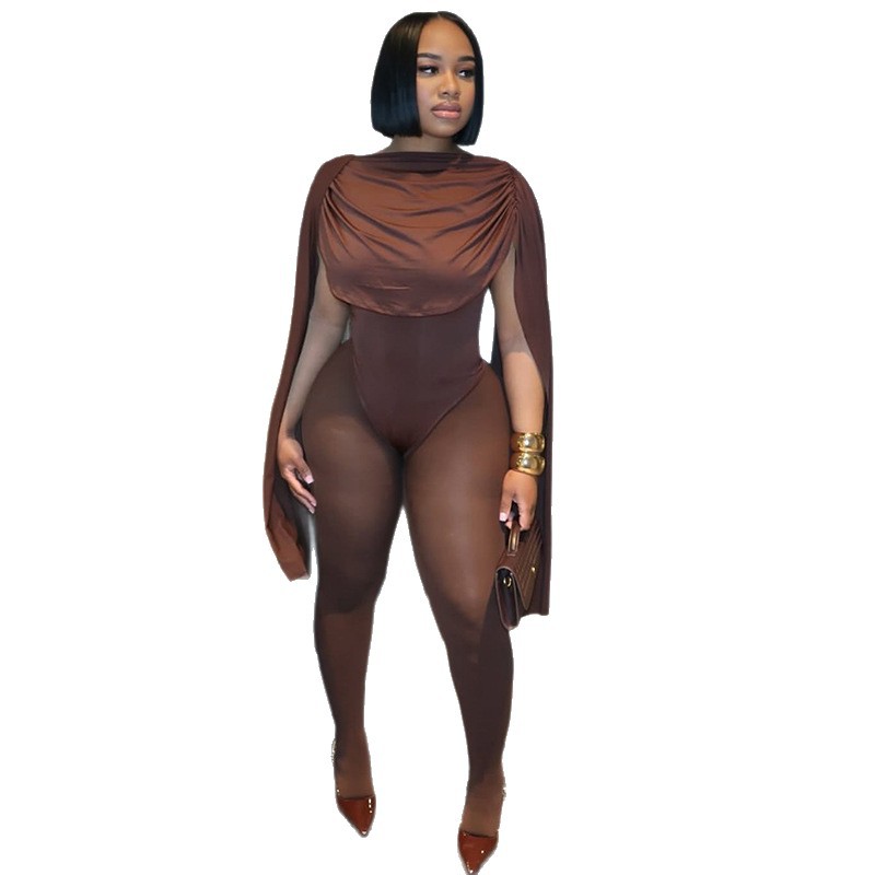 Главная страница > Европейский и американский стиль, трансграничный персонализированный модный женский обтягивающий комбинезон без рукавов с высоким воротником, плиссированный однотонный длинный комбинезон