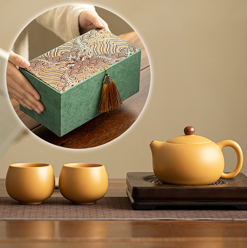 Золотой сегмент фиолетового глиняного чайника, полукоробочный подарочный набор Xishi Pot для домашнего использования, фиолетовый глиняный чайник Phoenix Song с двумя чашками, сувенирный подарок.