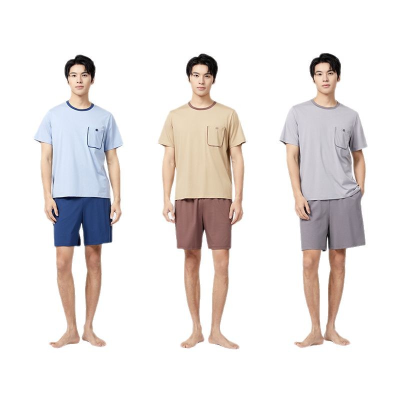 Главная страница > [Настраиваемый] Мужские пижамы, летний костюм, крутые шорты с короткими рукавами, брюки с карманами и клапанами в тон, которые можно носить вне дома, мужская одежда