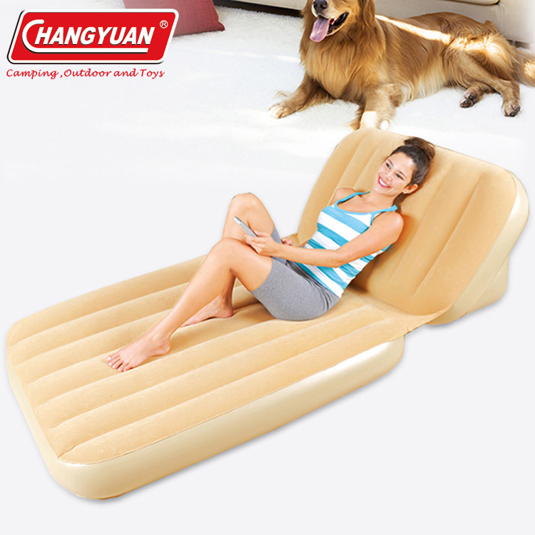 Надувная кровать с уличной спинкой, флокированный надувной диван-кровать, ленивая кровать, домашний портативный спальный коврик, матрас для кемпинга, влагостойкий коврик