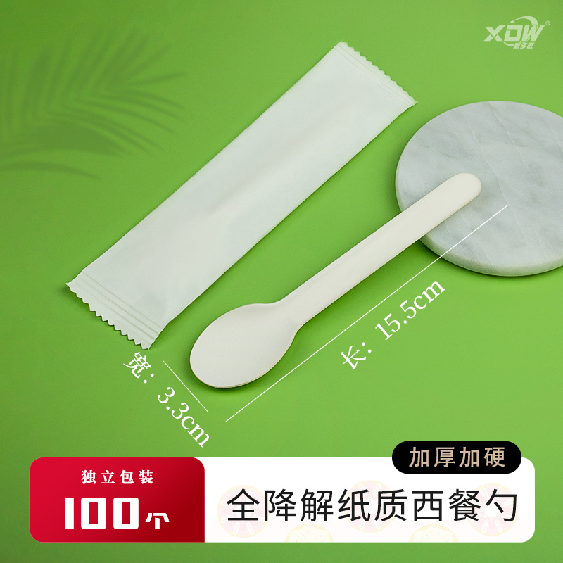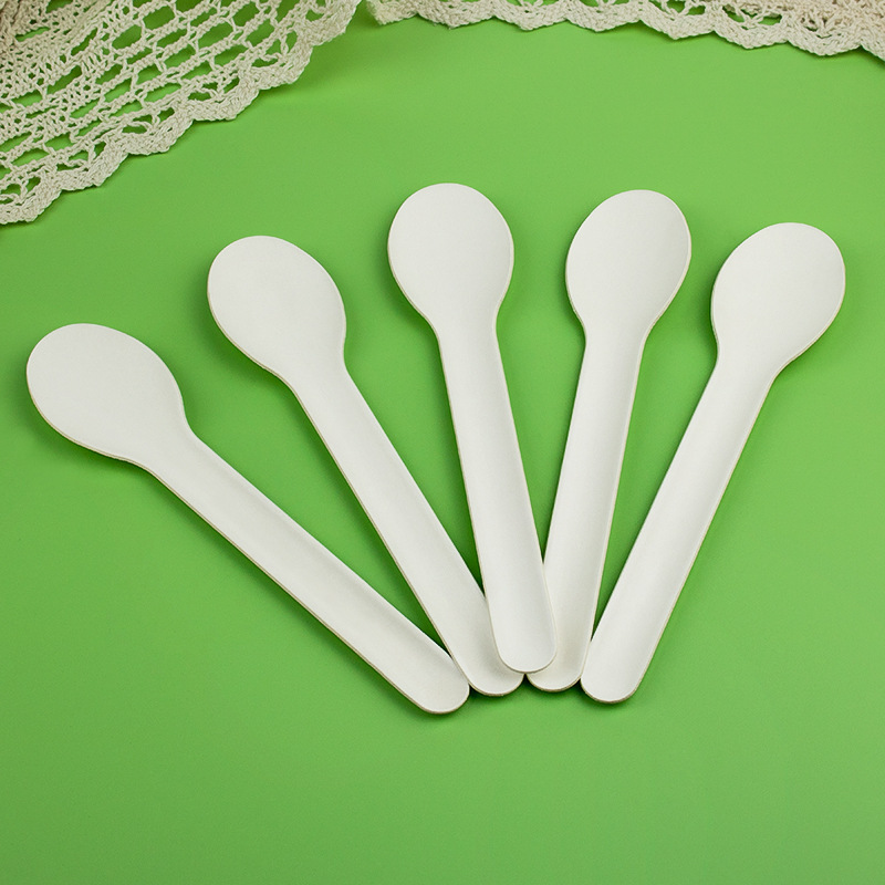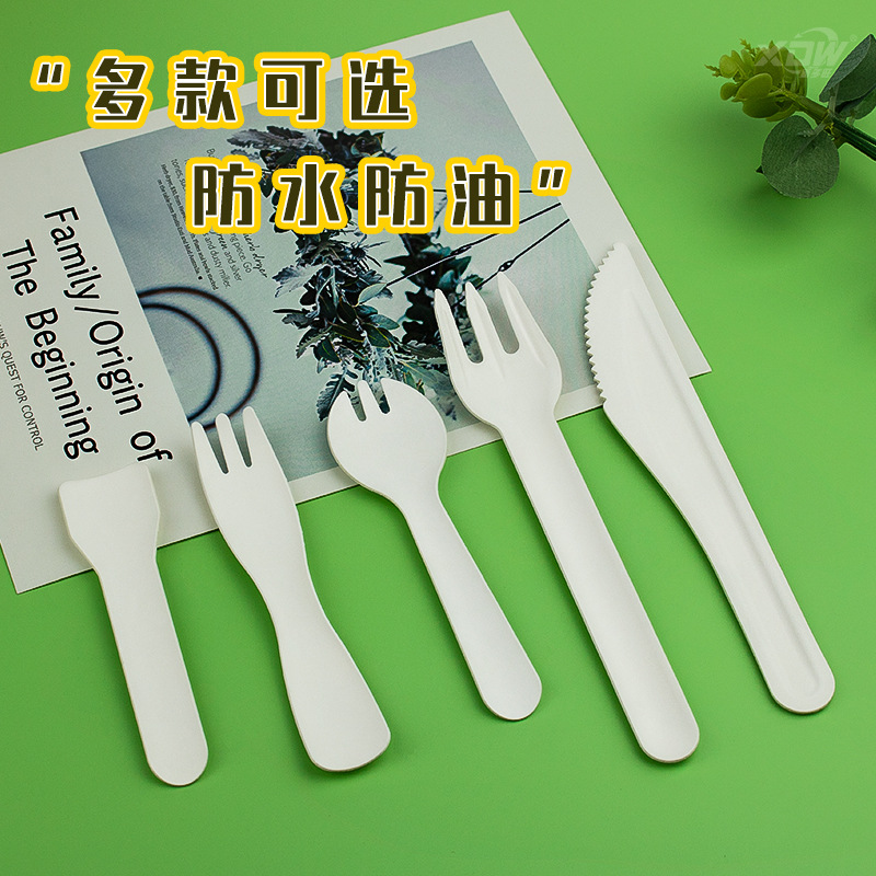 Главная страница > Разлагаемый материал Одноразовый бумажный нож и вилка ложка для торта Десерт ложка Фруктовая вилка йогурт пудинг ложка для мороженого