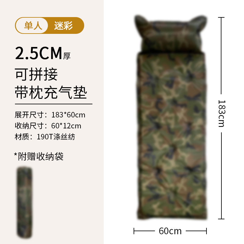 Одиночный камуфляжный надувной матрас 2,5 см.