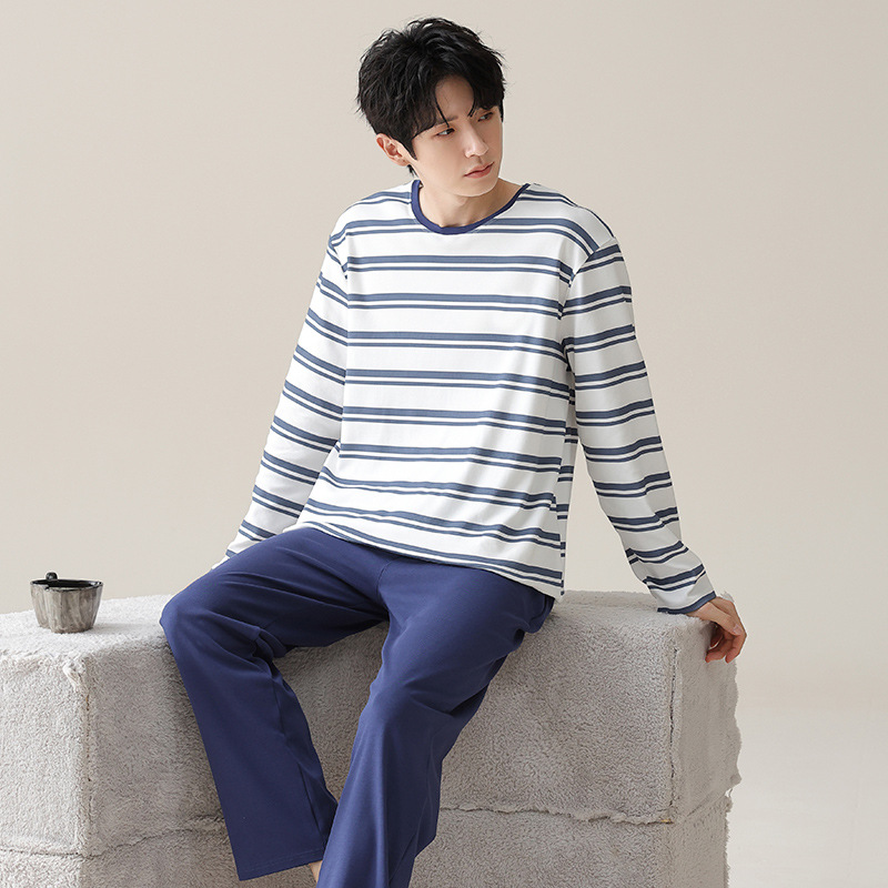 Главная страница > Мужские пижамы из 100% хлопка для весны и осени, комплект из длинных брюк и длинной рубашки с длинными рукавами, повседневная домашняя одежда, оптом, можно носить и на улице.