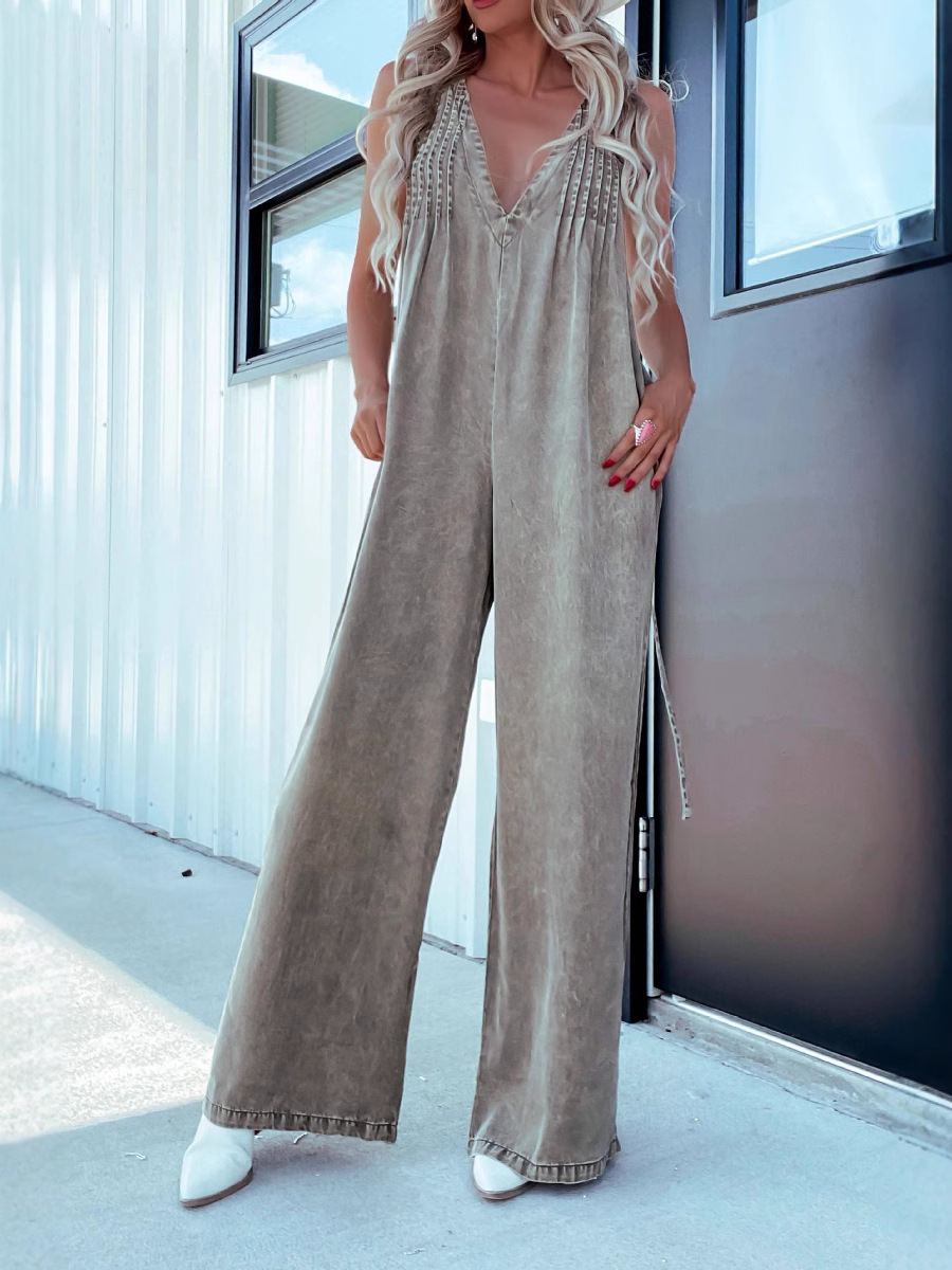 Главная страница > 2025 Amazon Европейская и американская мода женский комбинезон с v-образным вырезом без рукавов с открытой спиной, джинсовый комбинезон без рукавов 8925
