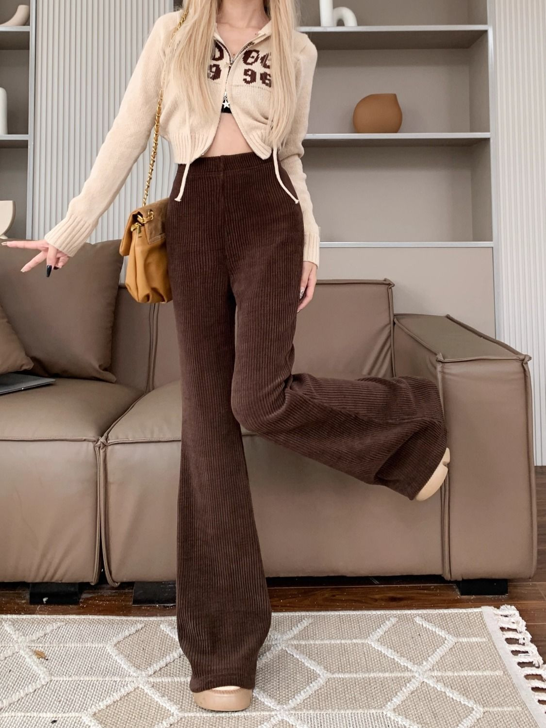 Главная страница > Вельветовый вельвет костюм микро-расклешенные брюки женский осень-зима 2023 новый ретро с высокой талией тонкие повседневные брюки ins